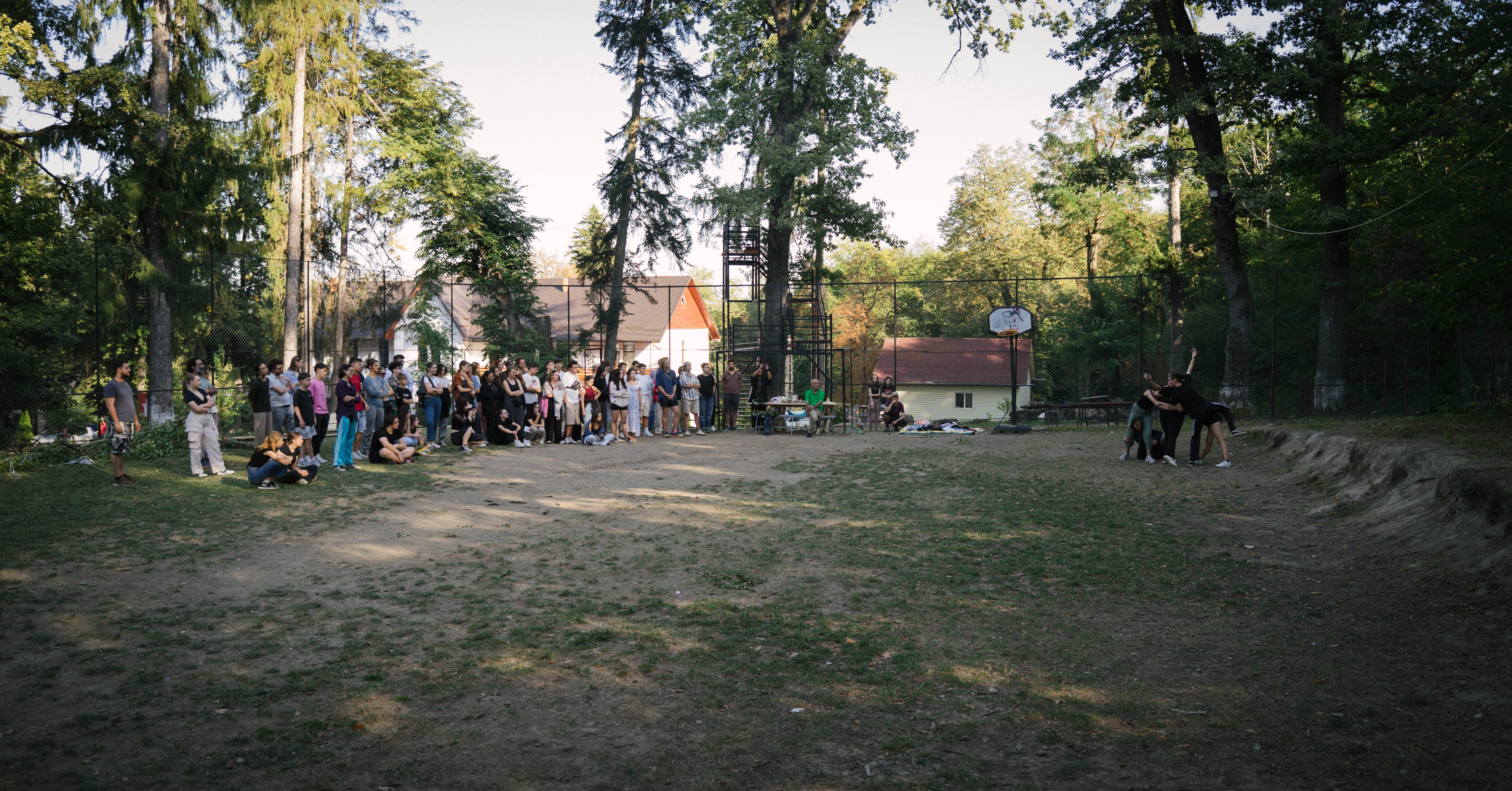 Ada Anghel, coregrafă, și Dan Michiu Dinescu, muzician și artist sonor, au avut un atelier împărțit în două experiențe: una implica explorarea corporală, iar cealaltă explorarea sonoră. Zona de mișcare a explorat noțiunea de real time composition, și a venit ca o practică pe care mulți din adolescenți poate căutau de mult timp să o aibă, pentru că în trupele lor de teatru nu au ocazia să lucreze în principal cu mișcarea. „Aveam o oarecare reținere, anumite inhibiții, poate nu mă simțeam prea stăpân pe corpul meu. Atelierul făcut cu Ada, de impro pe dans, mi-a scos toate inhibițiile legate de mișcarea corpului, mi-a dat voie să mă mișc fără să mă simt judecat. Cu Dan am descoperit că poți să faci muzică din orice, tot ce te înconjoară poate fi folosit mai mult decât crezi”, spune Gabi, unul dintre participanți. Partea de sunet a început cu Dan explicându-le posibilitățile de creație pe care le au la dispoziție, printre care și înregistrarea sunetelor din tabără. Pentru asta, au folosit o cutie cu pick-up magnetic, un mic dispozitiv care amplifică difuzorul. „Am vrut să creez o orchestră spectrală, în care adolescenții înregistrează sunete și aleg ce să pornească și cum să pornească”, adaugă Dan. Le-a dat niște indicații de bază, iar ei au venit cu tot felul de soluții, printre care înregistrarea sunetelor expresive de pe terenul de sport unde a avut loc atelierul.