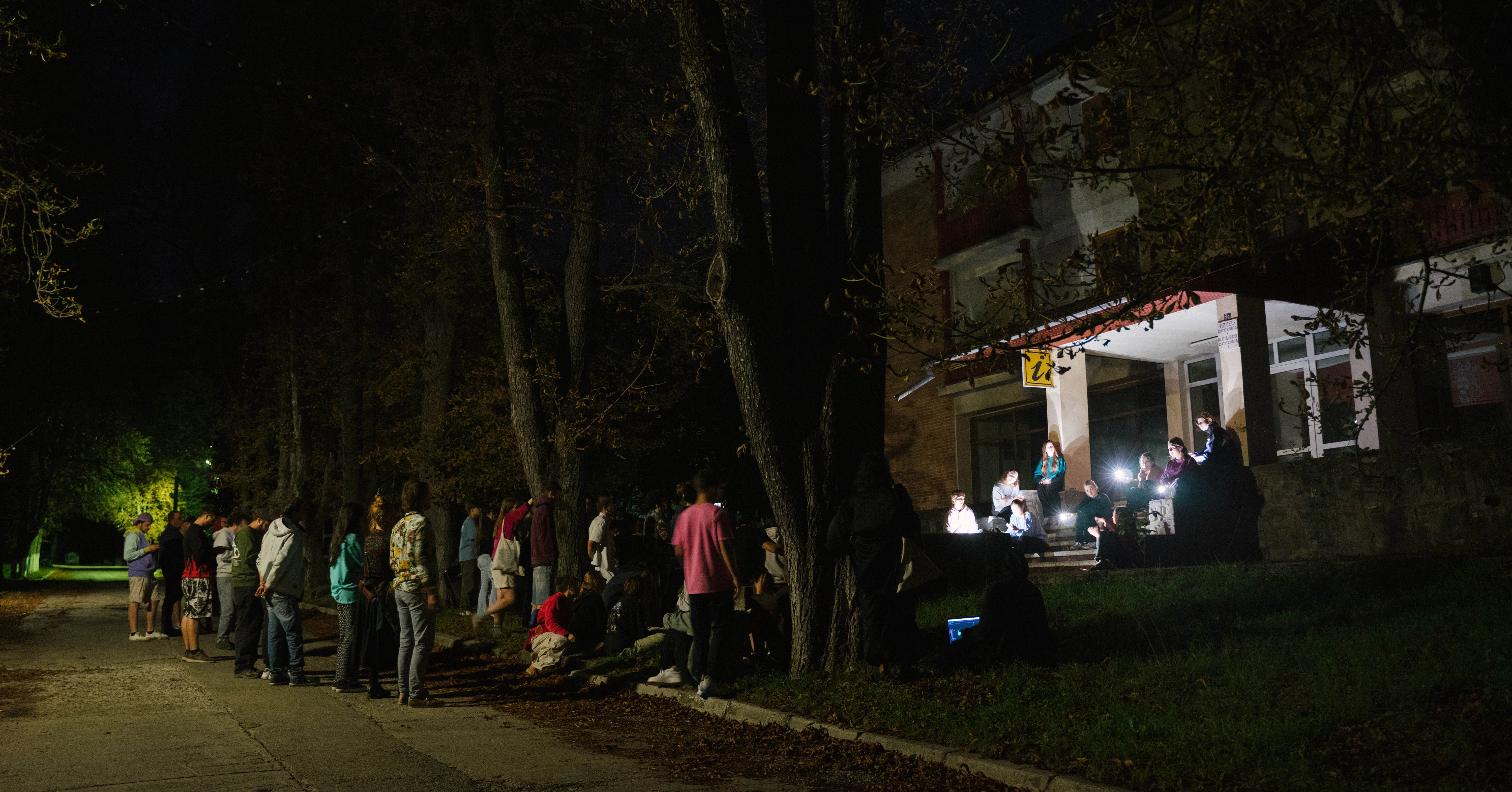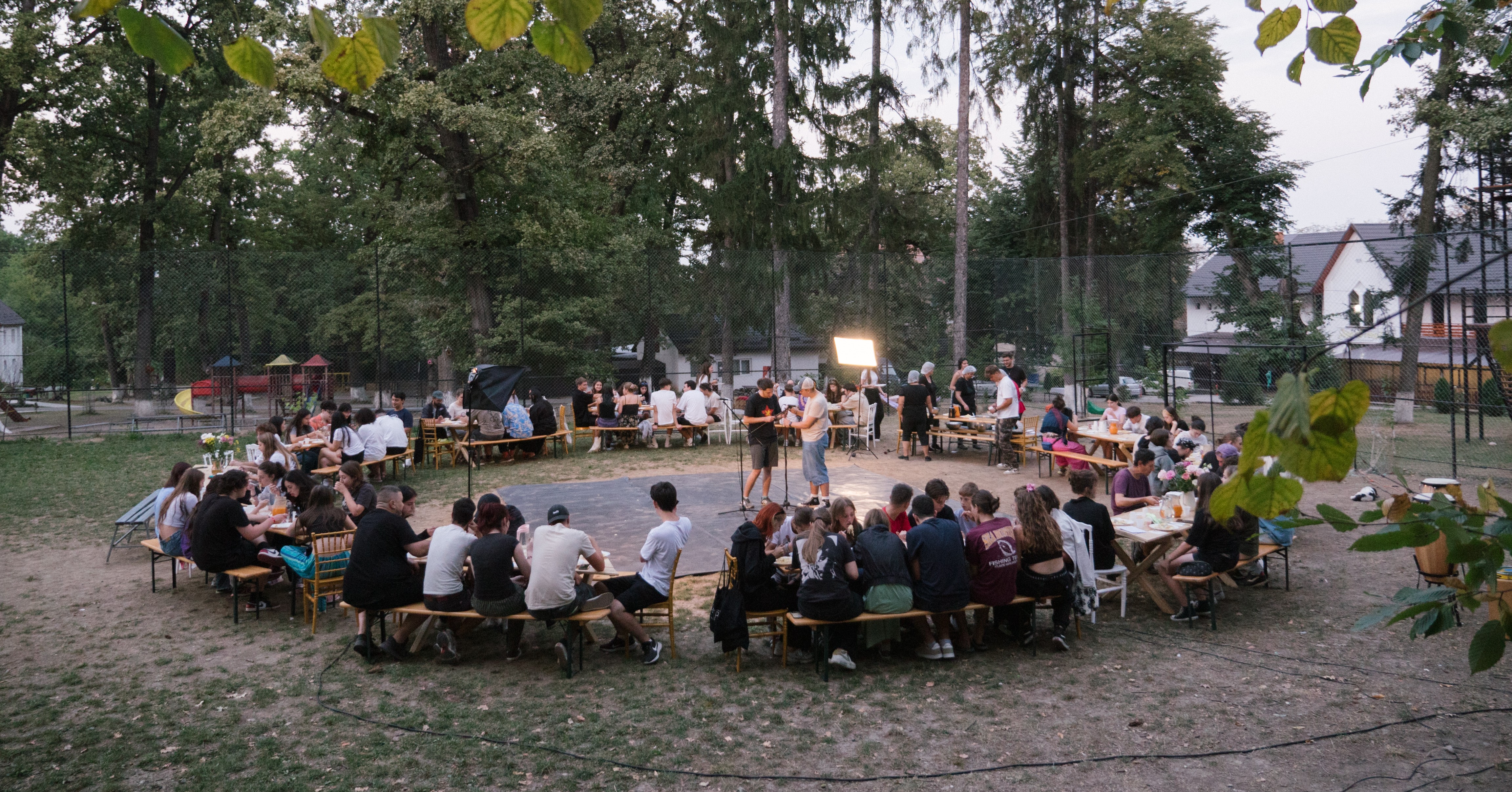 Fotografia principală: tinerii iau prima masă împreună la tabăra Oglinzi. Fotografii de Gabriela Cozma.