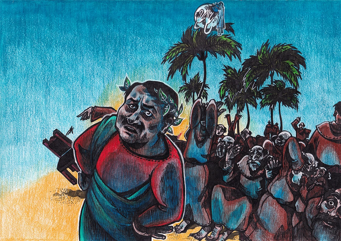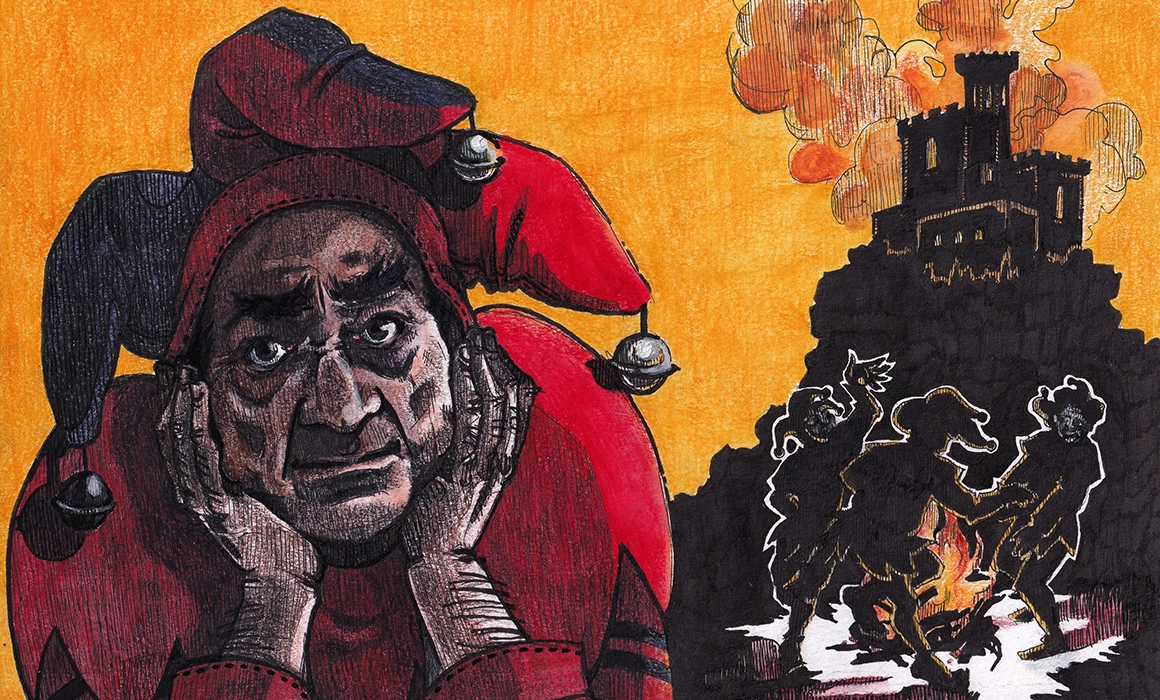 Iar în jur zburau scaune și huiduieli, viele și lăute, rozarii pentru rugăciuni și cilicii pentru martirizarea cărnii.