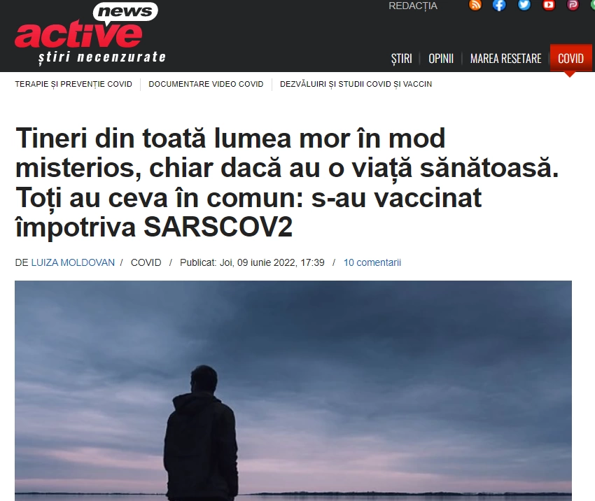 Evoluția narațiunii care leagă decesele subite de vaccinare poate fi observată în ActiveNews, principala publicație antivaccinistă din România. Încă din ianuarie 2021, ActiveNews publică regulat articole care încearcă să creeze imaginea unui val de morți „misterioase” sau „subite” (neașteptate). Iată câteva tiluri: