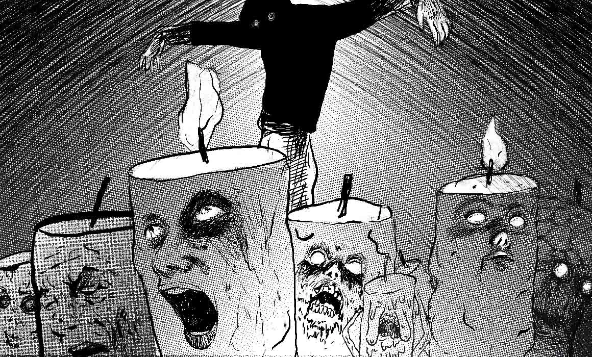 În timp ce Părintele asculta crucea, pe mine mă speriau lumânările. Vedeam în ele un chip înfricoșător, născocit parcă de imaginația unui Junji Ito. Uitându-mă mai atent, am observat că era chipul distorsionat al arhidușmanului meu: copilul supradotat Cristian Gava. 😡😡😡