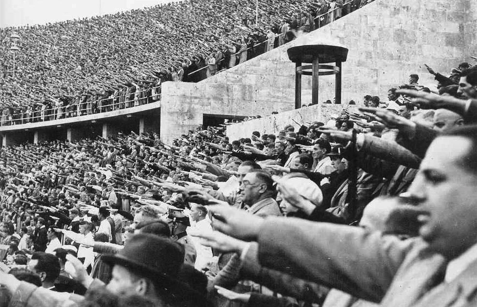 Să privim pe rând cele trei fotografii de mai sus. În prima dintre ele vedem publicul prezent la deschiderea Olimpiadei de la Berlin, din 1936, făcând salutul nazist. A doua prezintă un detaliu dintr-o festivitate de pe Stadionul 23 August, în epoca Ceauşescu. Cea de-a treia ne arată suporterii lui Liverpool, încurajându-şi echipa campioană. Ce au în comun aceste trei poze? Din toate răzbate aceeaşi fantasmă a „corpului total”, unitar, nefisurat, uniform (de aici şi atracţia uniformelor sau a tricourilor oficiale vândute de cluburi): precum corpul metalic glorificat odinioară de futuristul Marinetti şi revenind, astăzi, în reveriile despre cyborgi postumani. Faptul că putem deveni public al evenimentelor artistice şi sportive sau masă politică de manevră ţine, în fond, de aceleaşi resorturi psihologice profunde: o dorinţă viscerală de abandon momentan al „blestemului” individualităţii, de cufundare în – sau conectare la – ceva mai mare decât este fiecare în parte. Preţul pe care individul trebuie să îl plătească pentru acest sentiment de comuniune sau, mai curând, de „beţie” (în sensul evidenţiat de tânărul Nietzsche) este delegarea momentană a controlului şi responsabilităţii către un super-organism (sau corp) simbolic: Biserica, Statul, Naţiunea, Echipa.