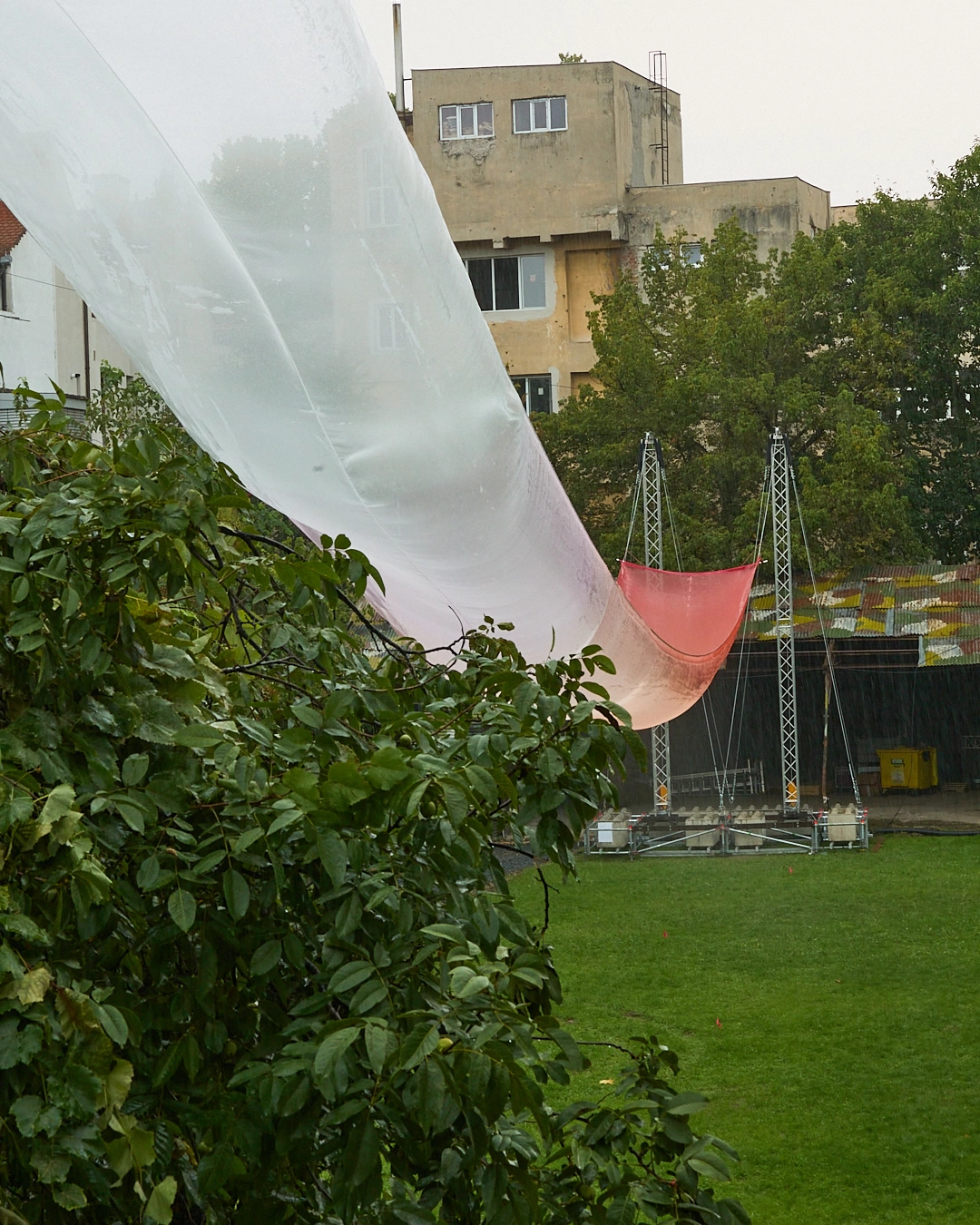 Ideea de spațiu ca experiență intimă, în aceeași măsură în care este un bun comun, m-a programat pe mod cover la această ediție a Bienalei timișorene de arhitectură, Beta 2024. Mintal, deja făcusem legătura cu Bienala timișoreană de arhitectură Beta 2022, care reprezentase felul în care ne puteam recâștiga responsabil dreptul la orașele în care trăim. De data asta, după „un an al Capitalei” (culturale europene), Beta vine cu un concept fin, cosy, transdisciplinar, cu un touch uman și imersiv. Accesând acest loc intrigant, în inima orașului pe care continui să-l experimentez de când mă știu, expoziția principală a Bienalei timișorene de arhitectură 2024, cover me softly, a venit la Comenduirea Garnizoanei din Timișoara ca o textură confortabilă peste un „corpus” expus, câteodată contestat, dar mereu populat: Piața Libertății. De la fâșia de material transparent de deasupra Pieței, care face legătura dintre spațiul exterior și cel interior, până la oaza de verde nou instalată în curtea Garnizoanei sau setting-ul unei mese festive în stilul anilor ‘70-80 din podul clădirii (lucrarea The Attic a lui Friedemann Heckel, artist berlinez, prezent la deschidere), Bienala timișoreană de arhitectură din acest an are toate șansele să te facă să „simți arhitectura”, după cum spune Oana Stănescu, curatoarea expoziției principale, cover me softly.