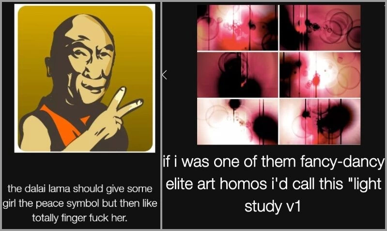 Am constatat că sunt sute de mii de artiști ca mine, care se străduiesc să-și crească micile profiluri în mod constant, pe lângă mii de alți artiști cu experiență, skill-uri extraordinare sau noroc, care sunt urmăriți de foarte mulți fani. Ei au adesea și o estetică similară, centrată pe o viziune utopică a omului în relație cu tehnologia, arta și natura, în spiritul acestei meme a lui Jilian Zhong: What if we kissed at the intersection of art and technology?