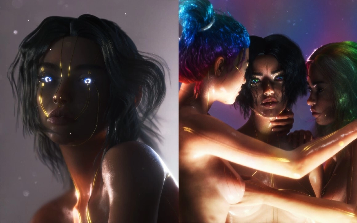 Nephronik (Brașov) abordează teme populare în arta 3D, cum ar fi modele umanoide cu inserturi tehnologice, inspirate oarecum din estetica cyberpunk. Prima din cele 2 lucrări de mai sus a fost cumpărată cu 2.88 ETH, adică $5.117), iar a doua ofertată cu 3.88 ETH ($7.143). Nephronik are lucrări pe mai multe platforme, printre care Makersplace, KnownOrigin și Foundation.