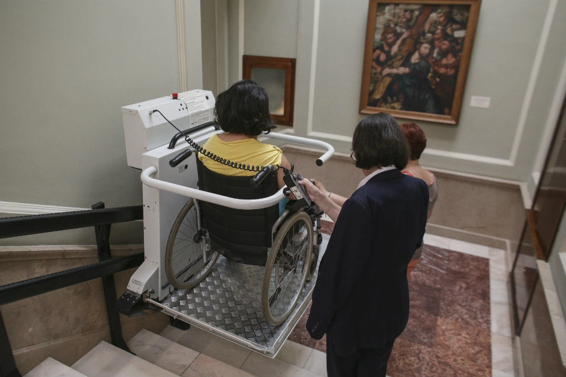 Muzeul are, însă, toate dotările, atunci când vorbim de accesibilitate. Pentru a intra în clădire există o rampă electrică și lifturi pentru a putea ajunge la fiecare nivel. Doar că pe 8 august, când am fost acolo pentru prima oară, rampa electrică era defectă. Din câte am aflat de la angajați, se stricase cu două săptămâni înainte de vizita mea. În primă fază, cei de la pază ne-au spus că e defect acumulatorul și că nu a sosit piesa comandată din Italia. La plecare, însă, au dat vina pe echipa de mentenanță, susținând că de fapt piesa venise, dar echipa nu răspunsese solicitării pentru a o înlocui.