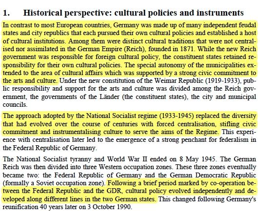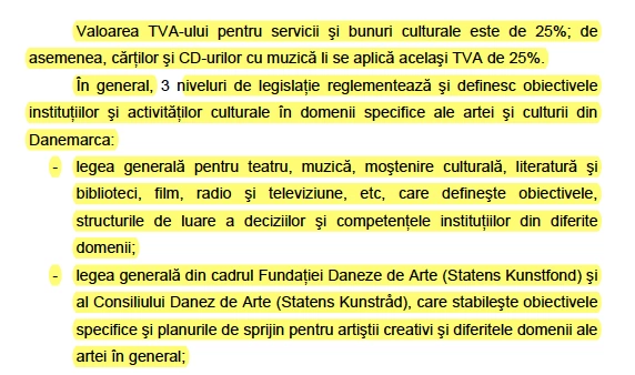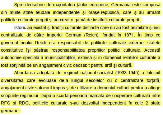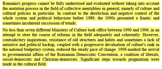 Capitolul din teza actualului manager și profesor al UNATC se intitulează „Sistemul cultural în Europa” și se întinde între paginile 105 și 180. După o scurtă introducere, urmează prezentări ale unor sisteme din țări din Europa Occidentală (Austria, Franța, Germania, Italia, Spania, Danemarca, Olanda), apoi ale unora din Est (Estonia, Ungaria, Polonia, Slovenia și Bulgaria).