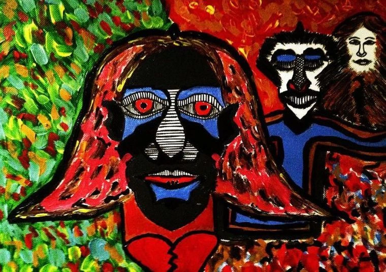 Desenam un figurativ 2D, din subconştient, la fel de infantil și grotesc, apoi împrăştiam vopsea după cum mă tăia sufletul. Acumulam puseuri care mă îndemnau să dau afară furie, respingere, regret, teamă, ridicol, intram în transă şi începeam să simt prin culorile alea care mă inundau, pictam rapid, fără răbdare, să scap de povară, având avantajul că acrilicul se usucă aproape instant. Odată, de exemplu, am desenat un nas, care s-a transformat într-un chip butucănos de o resemnare conținută, apoi în alte două chipuri urâte care ieșeau din el - o scindare a personalității - și-am amestecat instinctiv, pe fundal, culori vii. E unul dintre desenele care-mi plac cel mai mult, pentru că e foarte personal. Erau momente când mă distram şi râdeam singur în timp ce pictam, altele în care eram încântat şi surprins, altele, de maximă intensitate, când plângeam, uneori în hohote. După ce mă eliberam, mă simţeam mai plin pe dinăuntru. Respiram uşurat, ca după o şedinţă inconfortabilă de psihoterapie. Apoi aşteptam următorul puseu. Nu exersam metodic, nu căutam să învăţ tehnică, nu mă interesa decât release-ul ăla reconfortant venit după ceva spontan, chinuitor, fascinant.