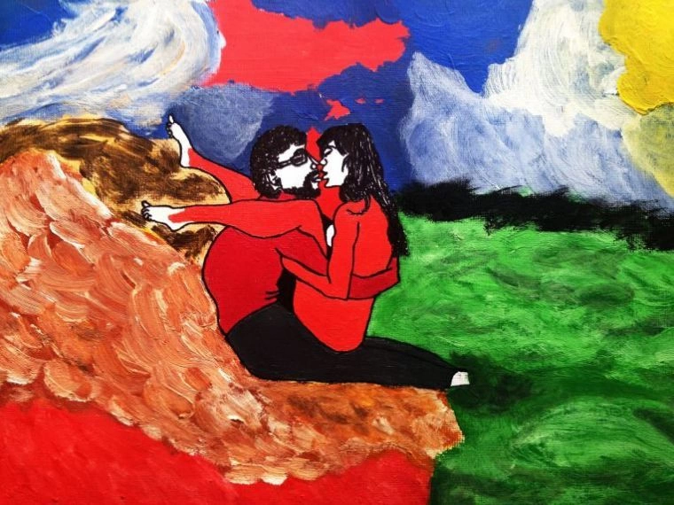 Pictatul m-a ajutat să simt din nou şi să mă reconectez la mine și la o sensibilitate pierdută. Ani de zile am trăit în ceea ce unii numesc depersonalizare, o lipsă de sens croită din sechele emoţionale, anxietate şi-un self-esteem şubred. Vedeam lumea printr-un văl, uneori ca într-un film alb-negru, eram amorţit, detașat de propriile gânduri şi de sentimentele pentru ceilalţi. Înăuntrul meu era o luptă continuă de recuperare a unui eu pierdut, a unor amintiri devenite difuze, a contactului cu materialul şi cu prezentul. Îmi analizam micronic reacțiile chimice și psihice, eram asaltat de vinovăție şi rușine. Experienţa asta în sine a fost o supapă pentru creativitate şi s-a transmis pe hârtie şi pe pânză, unde mi-am recuperat părţi din eul pierdut şi-am găsit un sens. Un sens care s-a impregnat pe pereţii apartamentului meu (îl am pe Kurt Cobain mare, în living, bucătăria e mânjită de graffiti), pe haine, pe o perdea, în barbă (îmi place de mor mirosul bărbii mânjite cu ulei).