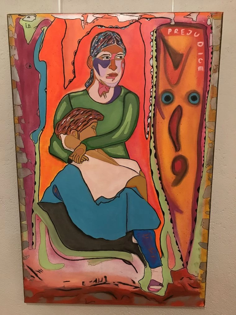 De la unul dintre ei am învăţat că, odată expusă, o lucrare nu mai e a ta: ne uitam la una dintre picturile mele, lui i-a plăcut cel mai mult, iar el îi căuta interpretări şi conexiuni la care nu m-aş fi gândit - eu încercasem să redau o femeie romă, săracă, ce-şi apăra copilul de prejudecăţi, el zicea ceva de Madonna with Child şi m-a întrebat Do you know Munch?, vedea acolo ceva din pictorul norvegian. M-am simțit ca la un examen pentru care nu eram pregătit și-a apărut și senzația aia incomodă de-a explica lucruri pe care nu le poți exprima în cuvinte, dar am încercat și eu o interpretare savantă, deși nu mai înţelegeam despre ce era vorba.