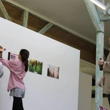 Dar e mișto că unii își termină instalațiile și lucrările acolo. Toată lumea lucrează la câte ceva, în fiecare cameră se întâmplă ceva. Eu când intru acolo, nu știu de ce să mă apuc. Îmi vine să stau peste tot. La un moment dat, să nu mai fac nimic, doar ca să-i văd pe ei lucrând, că sunt super. Așa ceva nu cred că s-ar putea întâmpla la o expoziție care nu e organizată de adolescenți. În alt context, nu-mi imaginez. Cu adulți, n-ar mai fi același lucru.