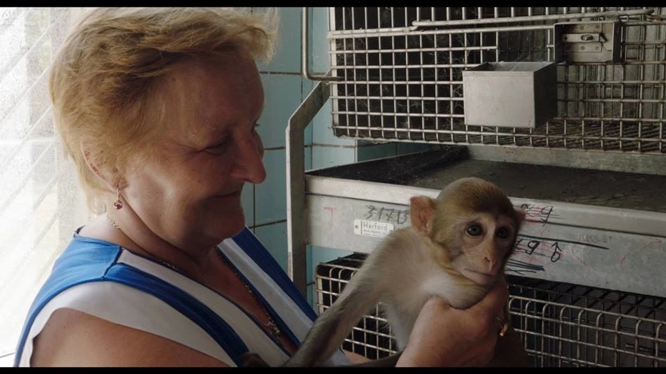 Printre cele mai dure scene/sesiuni de vaccinare și imobilizare a maimuțelor, este urmată de un prim-plan cu un pui/copil în pulovăr, croșetat de mâna îngrijitoarei care adoptă temporar maimuțe-pui, angajata cea mai empatică, căreia puii de maimuțe i-au salvat și viața conjugală și nevoia de afecțiune primară.