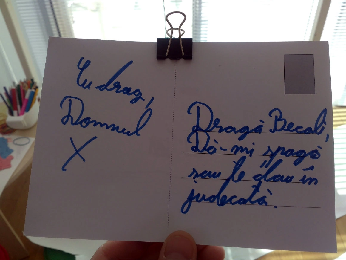 Am fost la expoziția cu lucrările elevilor din București care au participat la proiect, organizată de Da' De Ce la Muzeul Național de Artă Contemporană, și am stat de vorbă cu unii dintre copii despre lucrările lor. I-am întrebat care sunt părerile lor despre mersul țării în care trăiesc și, după ce am reușit să birui în fața răspunsurilor de-a gata, decupate din lecția despre patriotism, am aflat o mulțime de lucruri interesante de la puștii ăștia de 11-13 ani, pe care am face bine să-i ascultăm mai des.