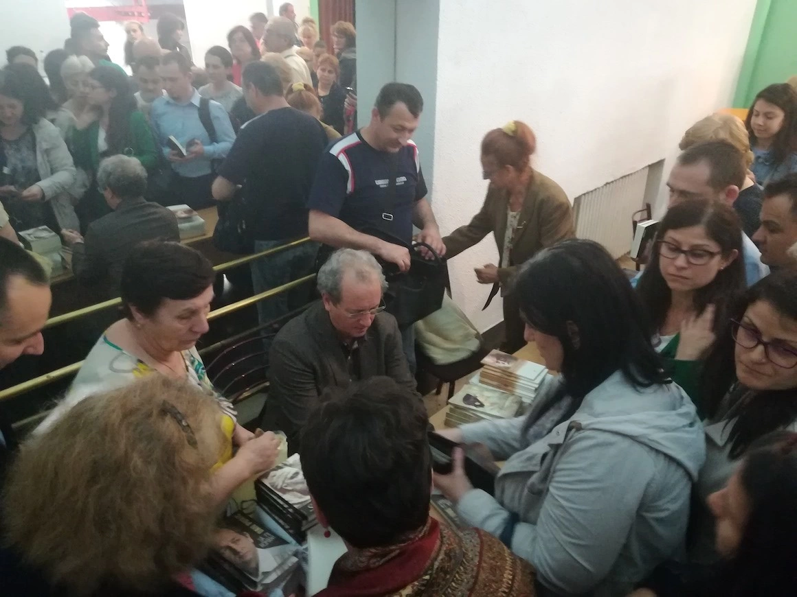 Uneori, se înfiripă o scurtă conversație cu cititorii. Când îi vine rândul la semnat, un domn îl roagă să scrie o scurtă dedicație „domnului doctor Ion Popescu”. O doamnă îi zice că bunicul ei a fost deportat, ceea ce declanșează în Dan Puric admirația. „Aveți un bunic cât o Românie Mare!”, o asigură maestrul.