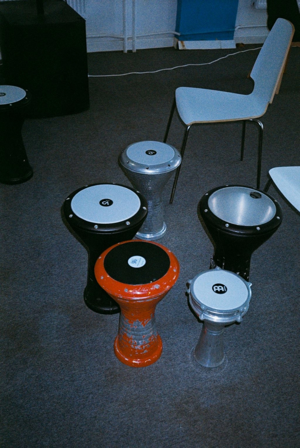 A lucrat mai mult cu băieții din penitenciar în cei doi ani de proiect. Astăzi, însă, într-o zi călduroasă de primăvară și în apropiere de finalul Shamanelism, le-a adus și pe fete în sala plină de instrumente muzicale. Când a venit Dinescu prima dată aici, nu era nimic. Acum sunt cel puțin șase darabane, o orgă, tobe, microfoane, boxe, mixere și un calculator unde pot să pună muzică.