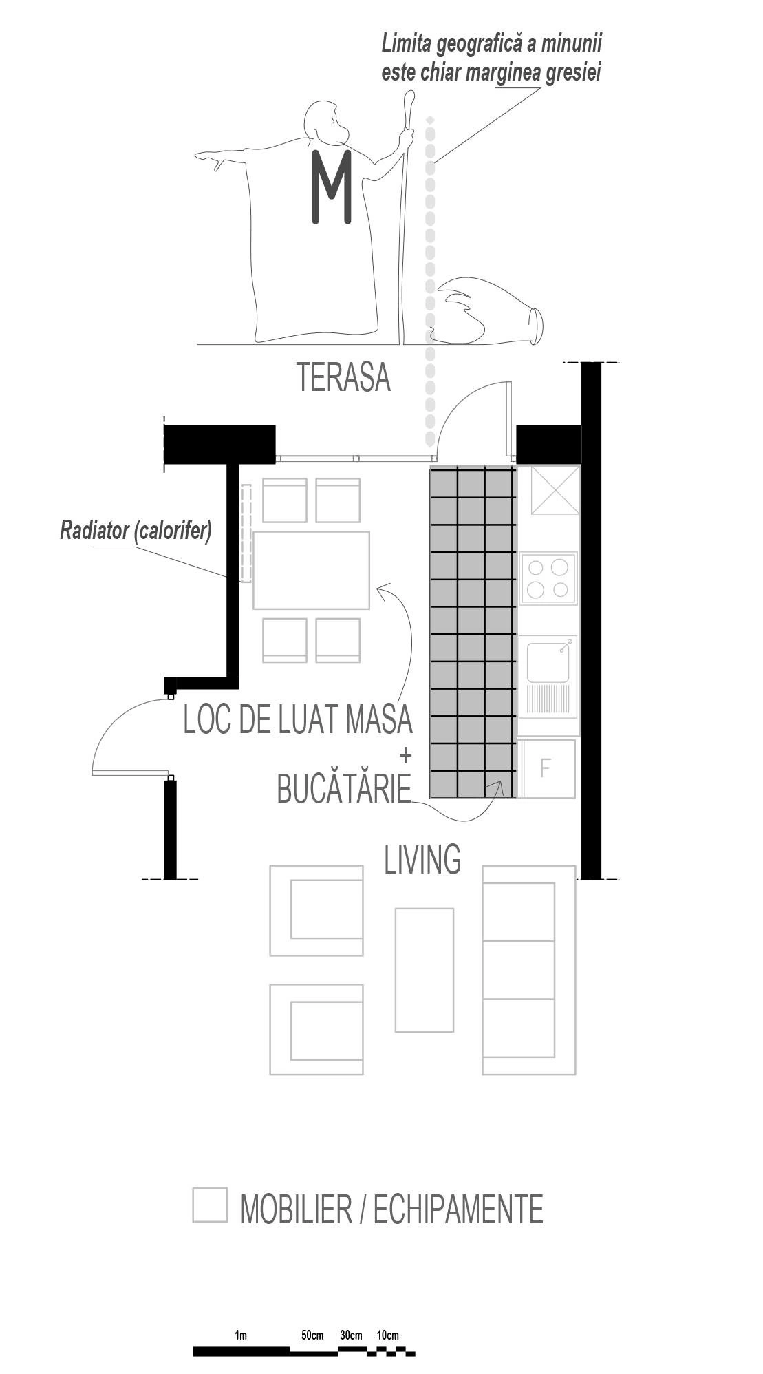 Lucrurile sunt undeva la mijloc. În sensul că există școala modernistă care a cartat toate activitățile umane și numărul de pași de care ai nevoie ca să ajungi la blat sau la altceva. Au creat un fel de blueprint de necesar minim pentru confort. Având chestia asta, îți dai seama că [proiectele] sunt în proporție de 99% similare și diferite în proporție de 1%. La modul ideal, îi oferi omului acel 1%, pentru că ține de cum își configurează el casa la nivel de nuanțe, de culori, de amenajări interioare. Dar dacă el are un blat normal, are loc și de frigider, și de cuva spălătorului de vase, și uscător de vase, și de aragaz, și de cuptor și se poate mișca.