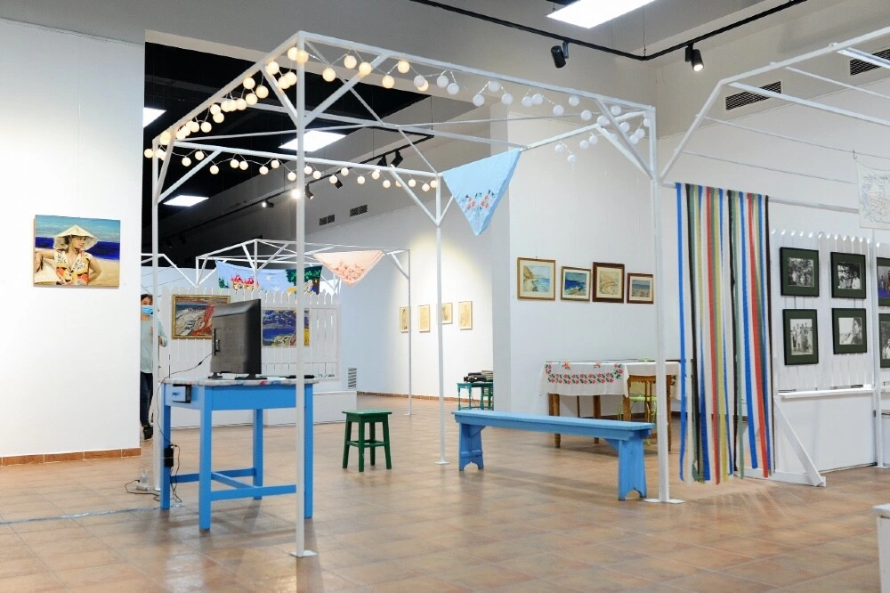 Sunt în expoziție și fac un tur ghidat, o doamnă necunoscută îmi povestește despre gazdele ei de la 2 Mai, familia Banu. „Ce fază, băncile din curtea lor sunt în expoziție”, îi spun și se bucură enorm. Începe să le fotografieze ca să le trimită Valentinei. De când s-a deschis expoziția primesc mesaje de la oamenii din sat, își recunosc bunicii, rudele sau vecinii în portretele realizate de Adrian și Alexandru Maftei - un proiect personal și intim, unde fiul (Alexandru) reface portretele sătenilor realizate de tatăl său. Unde mama, Lucia Maftei, inspirată de tot ceea ce o înconjoară pe plajă, reface în atelier melcii pe care îi trimitea la București prin poștă. Lângă ei mi s-a părut normal să așezăm cusăturile tradiționale tătărești ale lui Saide Velișa, gazda lor din sat. Cusăturile mi-au fost oferite de Ainur, fiul lui Saide, împreună cu povești și amintiri, spuse în timp ce răsfoiam teancul de fotografii ale familiei.