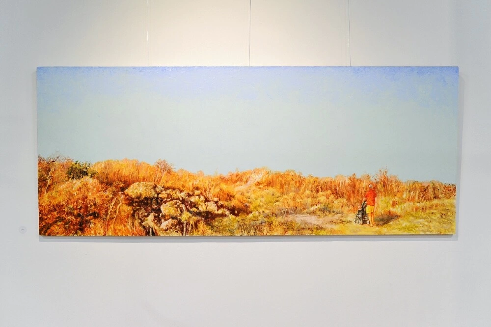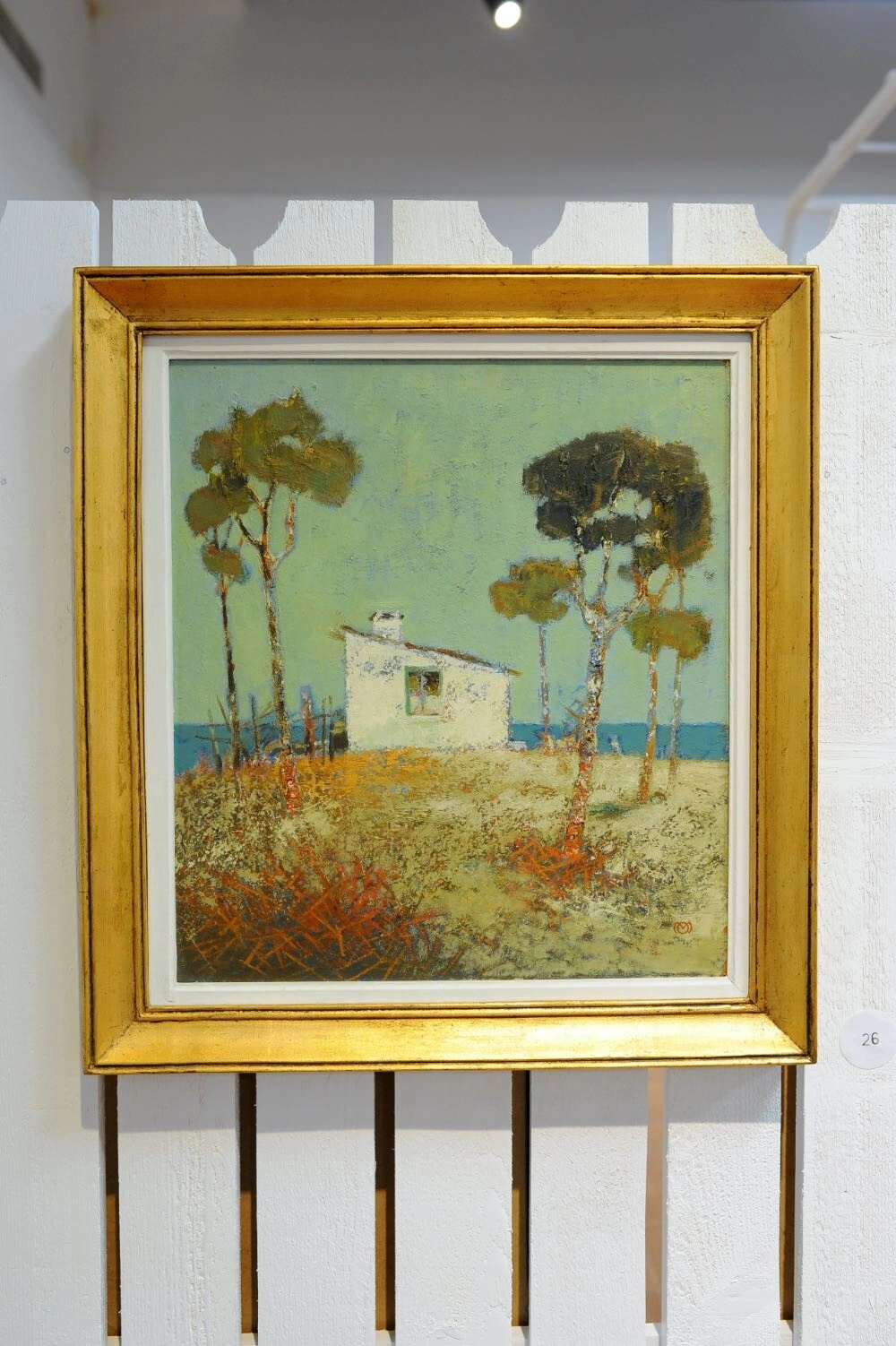 Pe partea cealaltă a gardului se găsește lucrarea Casa pescarului din Vama Veche, de Ovidiu Marcu. Prima dată am văzut pictura pe holul Bibliotecii Academiei din Cluj-Napoca, adusă acolo de profesorul Mihai Gherman. S-a gândit că poate am nevoie de ilustrații pentru lucrarea de doctorat - și iată că nu pentru doctorat aveam nevoie de ea, ci pentru o expoziție care nu era în plan atunci când l-am cunoscut.