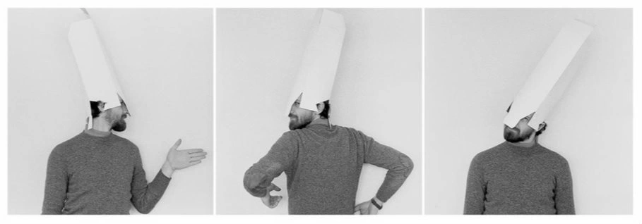 De fapt, mai simplu de-atât, le-a spus, direct, ceva de genul când vine domnul ăla... capul la cutie. Când a ieșit din birou, colegii l-au întrebat ce voia directorul. Așa că Scriba a luat o cutie și fără să le mai spună mare lucru, le-a arătat. În consecință, în imaginea de mai sus, artistul poartă pe cap o cutie de carton, făcând și niște gesturi de salut, oarecum similare cu „comportamentul social standard” din timpul unei întâlniri în cadru profesional.