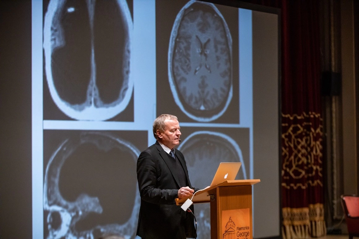 Înainte de conferință, am stat de vorbă cu cercetătorul, care conduce Spitalul Universitar de Psihiatrie și Centrul de Transfer pentru Cercetare şi Neuroştiinţe din Ulm, ambele înființate de el în 2004. Tonic și elocvent, Spitzer vorbește pe înțelesul publicului larg din Germania, într-o emisiune TV numită Geist und Gehirn (Minte și creier). Duminică, 23 februarie, în holul unui hotel din centrul Bucureștiului, cu un smartphone care înregistra conversația pe masă, mi-a explicat de ce ar fi bine să nu mai lăsăm tehnologia să ne colonizeze viața, să mai ieșim din ecrane și să avem în mod special grijă cum e folosit calculatorul în educația celor mai mici dintre noi.
