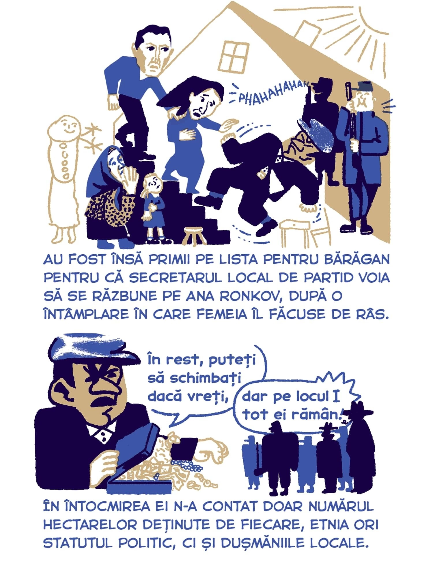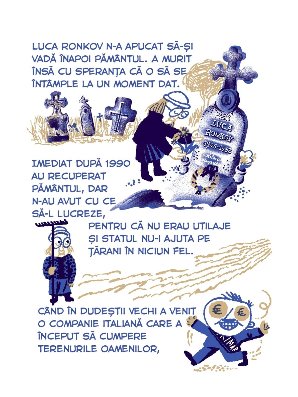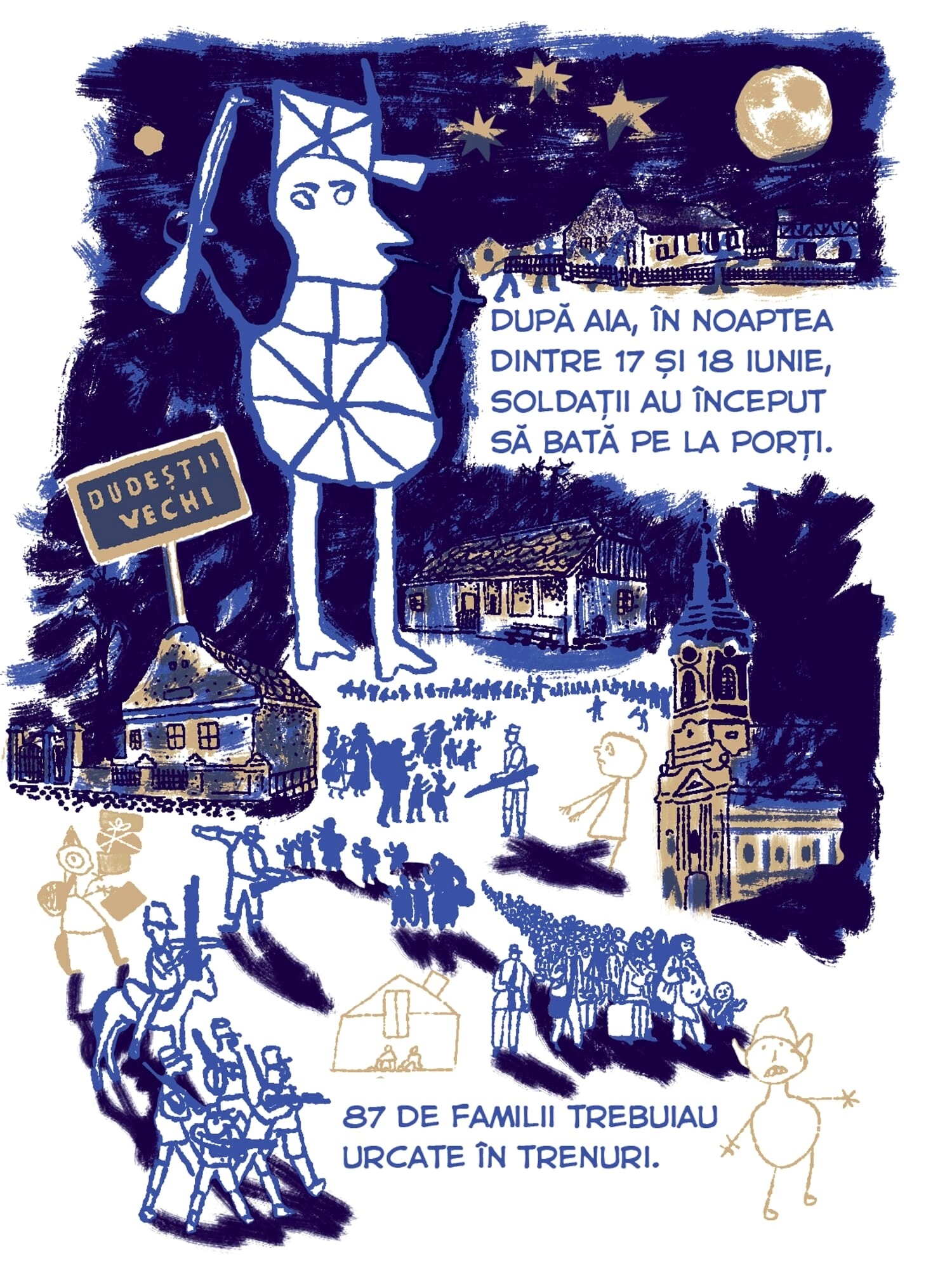 Continuăm seria de benzi desenate Tur Banat cu o poveste despre deportări, bazată pe documentarea jurnalistului Vlad Odobescu. Petronela Tămaș avea patru ani în 1951, când a fost deportată în Bărăgan, alăuri de familia ei. Ca ei au mai fost câteva zeci de mii de locuitori din vestul țării, pe care Gheorghe Gheorghiu-Dej i-a mutat cu forța în celălalt capăt al țării, de teama unor posibile neliniști politice. Sorina Vazelina a ilustrat bucata asta de istorie, așa cum a traversat-o Petronela, care a cunoscut încă din copilărie nesiguranța și frica, pe care regimul comunist și sistemul lui de securitate au transformat-o într-o armă de control în masă.