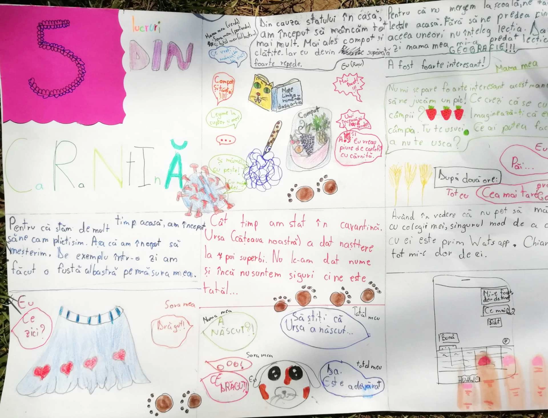Am vrut să văd cum se înregistrează bucata asta de istorie stranie pe care am trăit-o cu toții de la începutul anului, în mintea și în imaginația copiilor. Așa că am invitat câțiva copii de vârste diferite să-și deseneze experiențele de pandemie, când au învățat ce înseamnă izolarea, masca de protecție și virusul nevăzut.