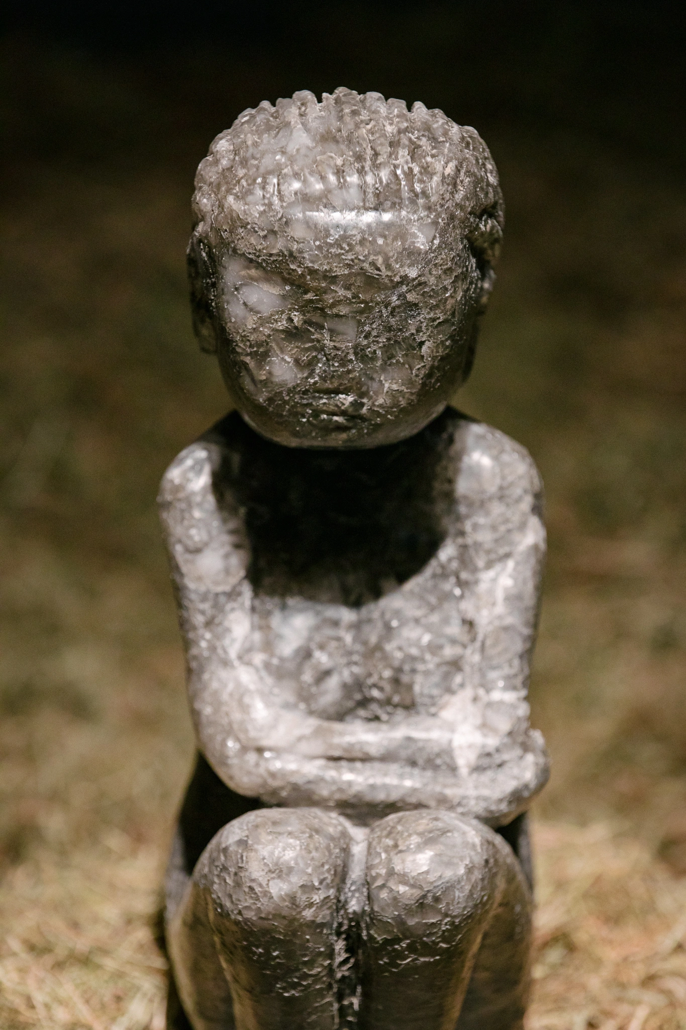 Fotografie principală: „Cumințenia pământului” din expoziția „DesFacerea Lumii”, sculptură din sare (56 x 26 x 16cm), fân. Timișoara, Art Encounters. Foto: Remus Dăescu