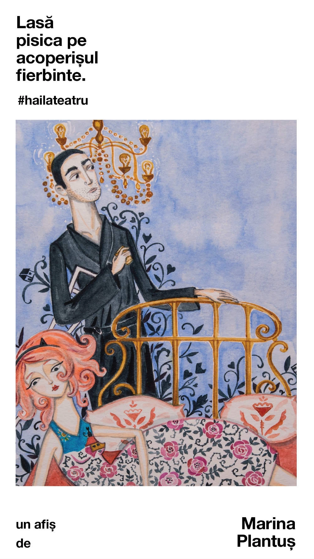 Tema mea a fost „Lasă pisica pe acoperişul fierbinte”, cu trimitere, evident, la piesa de teatru Pisica pe acoperişul fierbinte a lui Tennessee Williams. În ilustraţia mea, am încercat să pun în evidenţă contrastul dintre cele două personaje principale, datorat conflictelor conjugale. Brick fiind cel ce se confruntă cu o serie de probleme - printre care şi alcoolismul -, l-am reprezentat în culori închise. Pe Maggie, soţia lui ce îşi dorea cu disperare o împăcare, am ilustrat-o în culori aprinse. Privitorul pătrunde mai uşor în poveste şi prin intermediul simbolurilor, cum ar fi patul matrimonial, casa şi trandafirul cu ţepi.