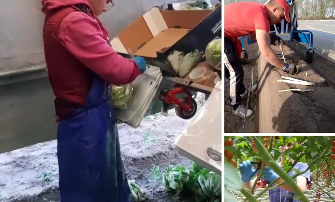 Imagine principală: Colaj de cadre luate din postări de TikTok ale sezonierilor români, via Harvesting Solidarity. Realizat cu Canva.