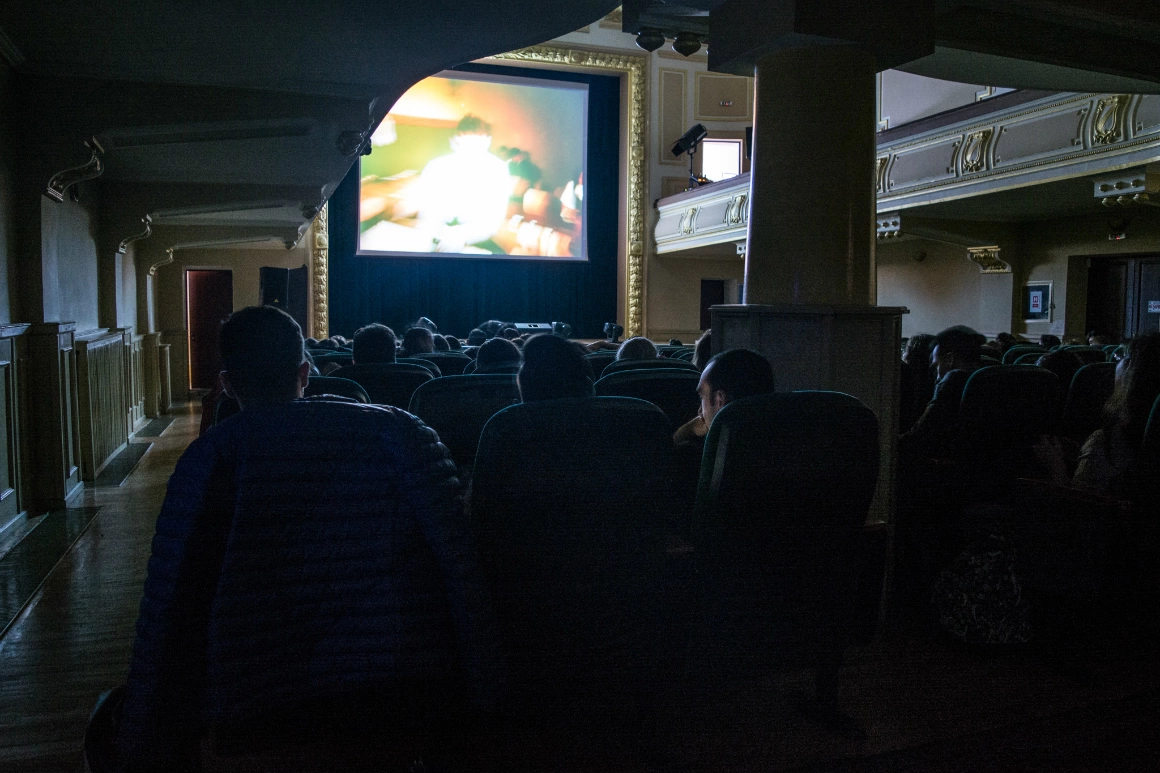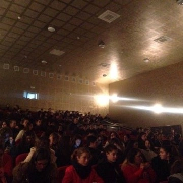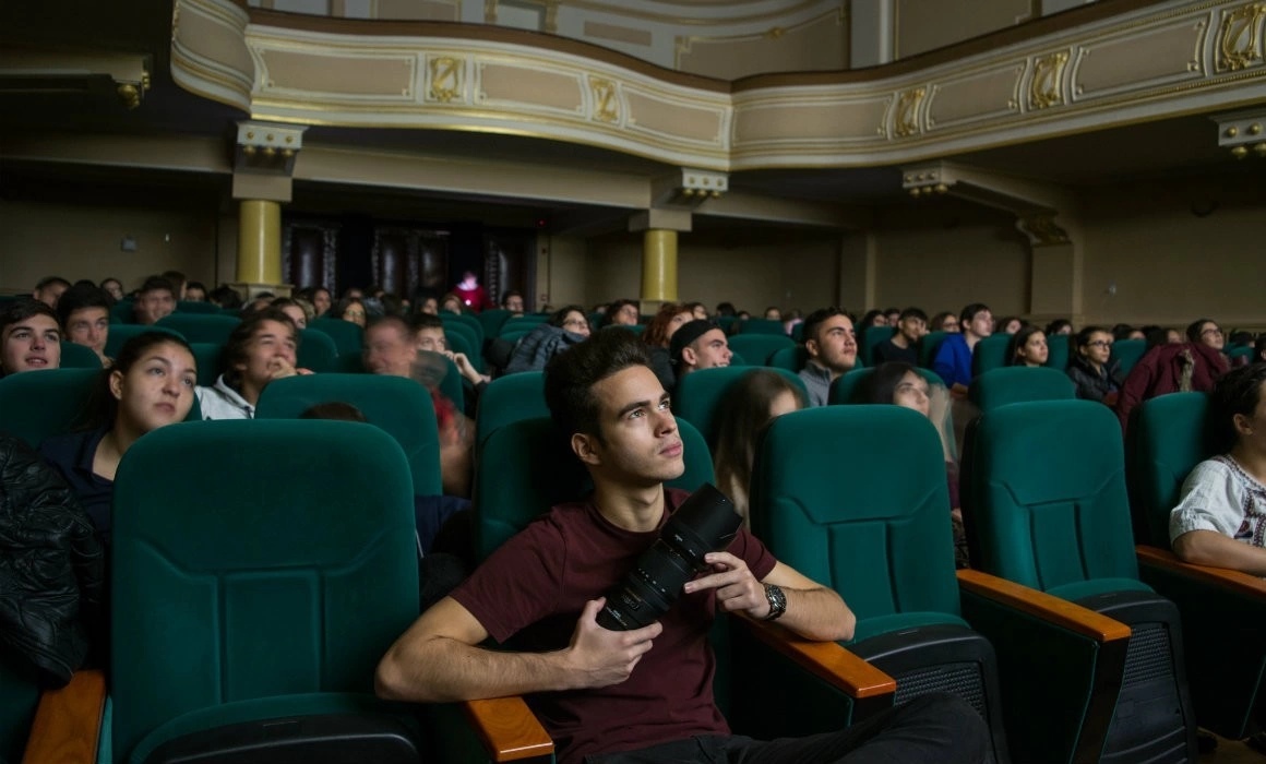 „Nu vrem să vorbim dacă regimul comunist a fost unul bun sau unul rău, ci să ne uităm cu un ochi critic la filmele astea. Să vedem cum se trăia atunci și cum se prezenta realitatea”, spune Jo Brăilescu în fața unei săli pline cu elevi de la Spiru. „Mi se pare mult mai important să aflăm care e miza care contează pentru voi, care sunt subiectele care vă ating, decât să vă spunem că un film e mai bun ca altul.”