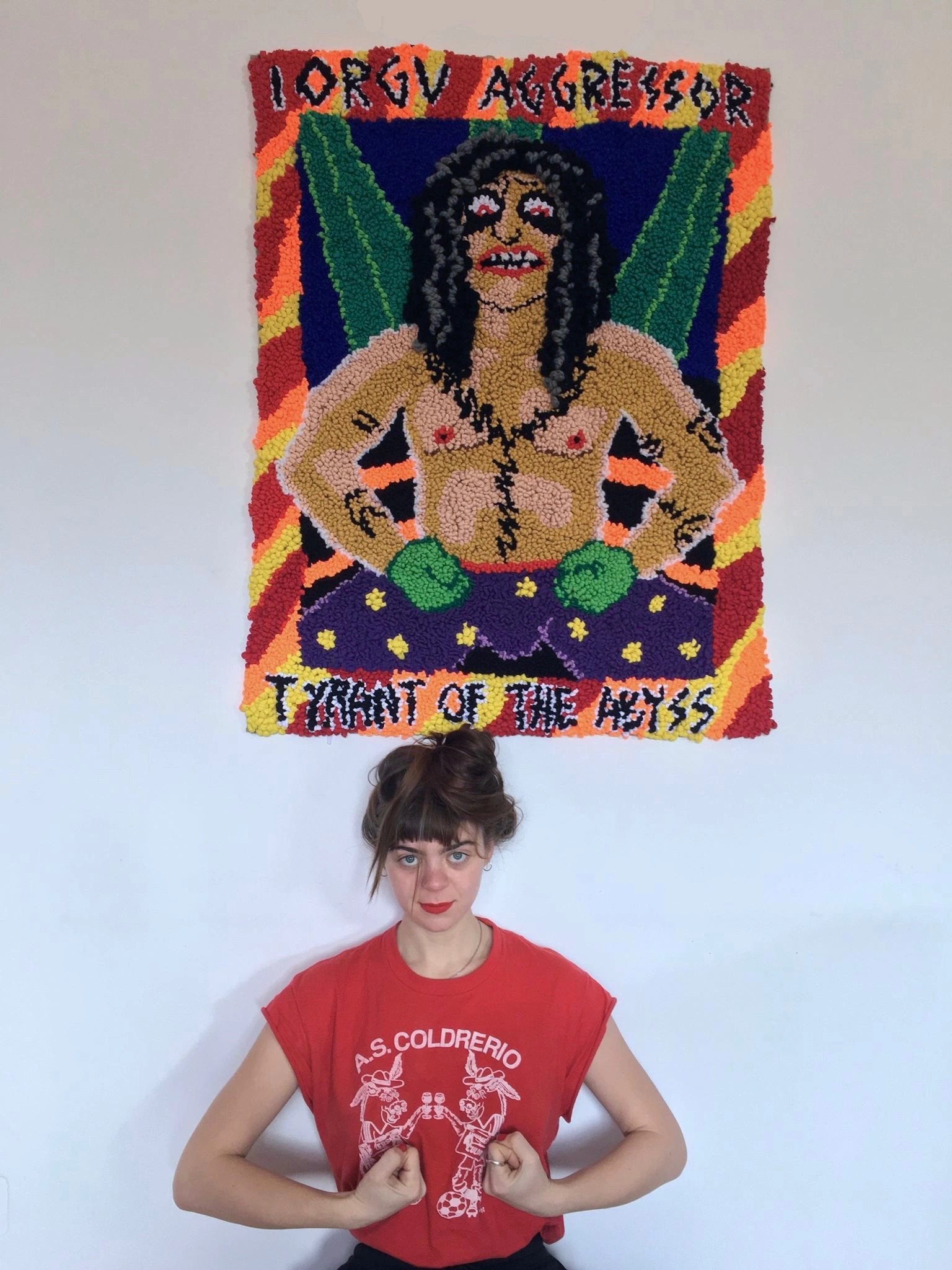 După ce l-a văzut pe Iorgu la show-ul de wrestling, s-a întâlnit cu el la un vernisaj și i-a zis că lucrează la o carpetă cu el. „Cum adică un covor?”, a întrebat-o. „Eu fac covoare și fac un covor cu fața ta și scrie Iorgu Aggressor, Tyrant of the Abyss”, i-a răspuns ea. Asta e descrierea lui în engleză, pe Facebook. Spune că Iorgu n-a ajuns la expoziție, dar a văzut o poză cu covorul, care i-a plăcut și pe care și-ar dori chiar să-l cumpere. O carpetă de 160/115 cm în care Megan investește trei săptămâni de muncă și vreo 200 euro în materiale o vinde cu 1500-2000 euro.