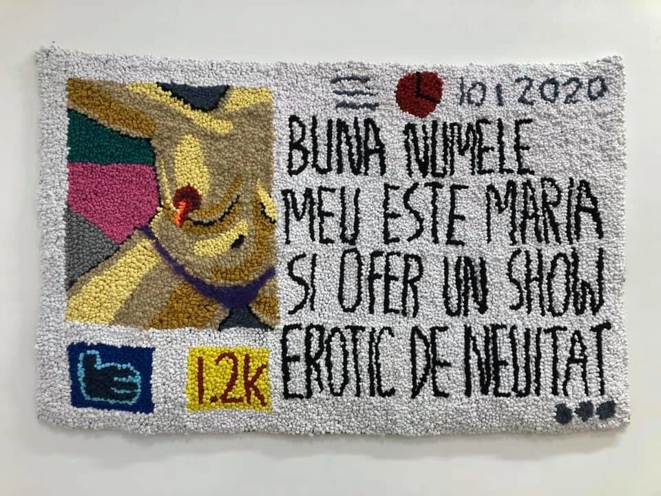 Vara trecută, când a fost la o rezidență artistică la Slănic Moldova, și-a luat cu ea ustensilele și a făcut o carpetă cu o termocentrală abandonată. Pentru ea, ceea ce creează e mereu legat de locul în care se află. „Dacă stau în apartamentul meu în București, nu aș putea să mă gândesc ah, e o fabrică abandonată în Slănic Moldova”. I-a plăcut atât de mult ce a ieșit, încât nu s-a îndurat să o pună pe jos și a agățat-o pe perete.