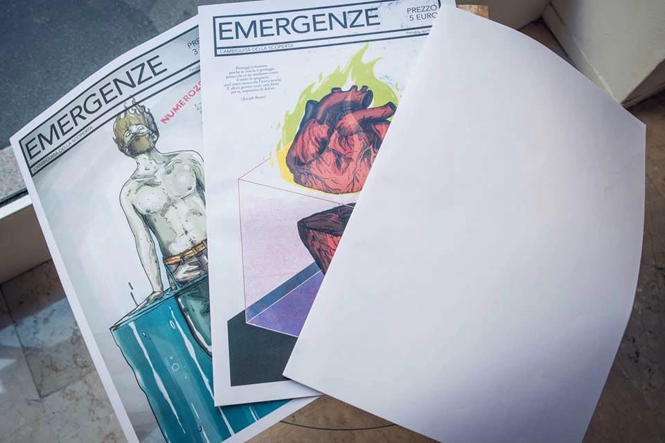 Numărul zero al revistei debutează, așadar, în forță, dublat de operațiunea Riprendere il filo (Reluarea firului), proiect artistic pornit de artista Kristina Borg, realizat la Milano, San Lauro Cliento și apoi în Perugia: puncte simbolice din oraș erau conectate între ele cu un fir roșu, membrii echipei intrând în casele oamenilor, vorbind cu ei, dialogând despre probleme, soluții, idei, critici. Operațiune în care trecătorul conta la fel de mult ca artistul, care a stârnit multe dezbateri și interpretări, a adunat fani și reclamații, a rezistat vântului de sfârșit de iarnă: la final, însă, tot orașul știa de grupul Emergenze. Publicația a mers înainte preț de cinci numere, fiecare explorând o tematică anume, fiecare generat de o redacție deschisă și nomadă, și de cele mai multe ori asociat și unei inițiative artistice. Sau ca un răspuns caraghios la critici: ultimul număr se declara primul ziar din lume fără o linie editorială, ca un mic mișto de rămas-bun. S-au oprit acolo, concluzionând că au făcut toate experimentele posibile în acel format după un tiraj de 1000 de bucăți epuizate aproape integral pentru fiecare număr, în condițiile în care nu exista o distribuție (infinitul, însă, deja prindea formă). Între timp, grupul suferă mutații, alăturări – apar Alberto Brizioli (responsabil cu latura foto-video a proiectului), Paolo Marchettoni și Luca Mikolajczak (studenți, jurnaliști, visători) –, dar și sustrageri, cum îi șade bine unui organism viu.