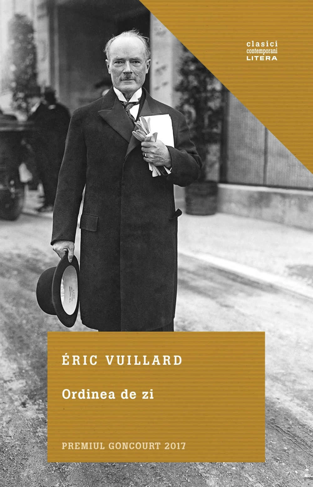 Ordinea de zi, micul volum al lui Éric Vuillard, este cel mai recent premiat cu Goncourt. E un roman foarte francez – și, deși asta a ajuns să nu mai însemne mare lucru (ba dimpotrivă: literatura franceză produce mult și în genul minor), în contextul de față sensul este pozitiv. Un stil acordat la perfecție cu tema lui gravă (Luiza Vasiliu, care a făcut și un interviu cu autorul, zice că în franceză cartea este o capodoperă: câte ceva, suficient de fapt, s-a păstrat și în traducerea românească, singura pe care am citit-o), plus un amestec specific de eseism, nonficțiune narativă și metaficțiune istoriografică.