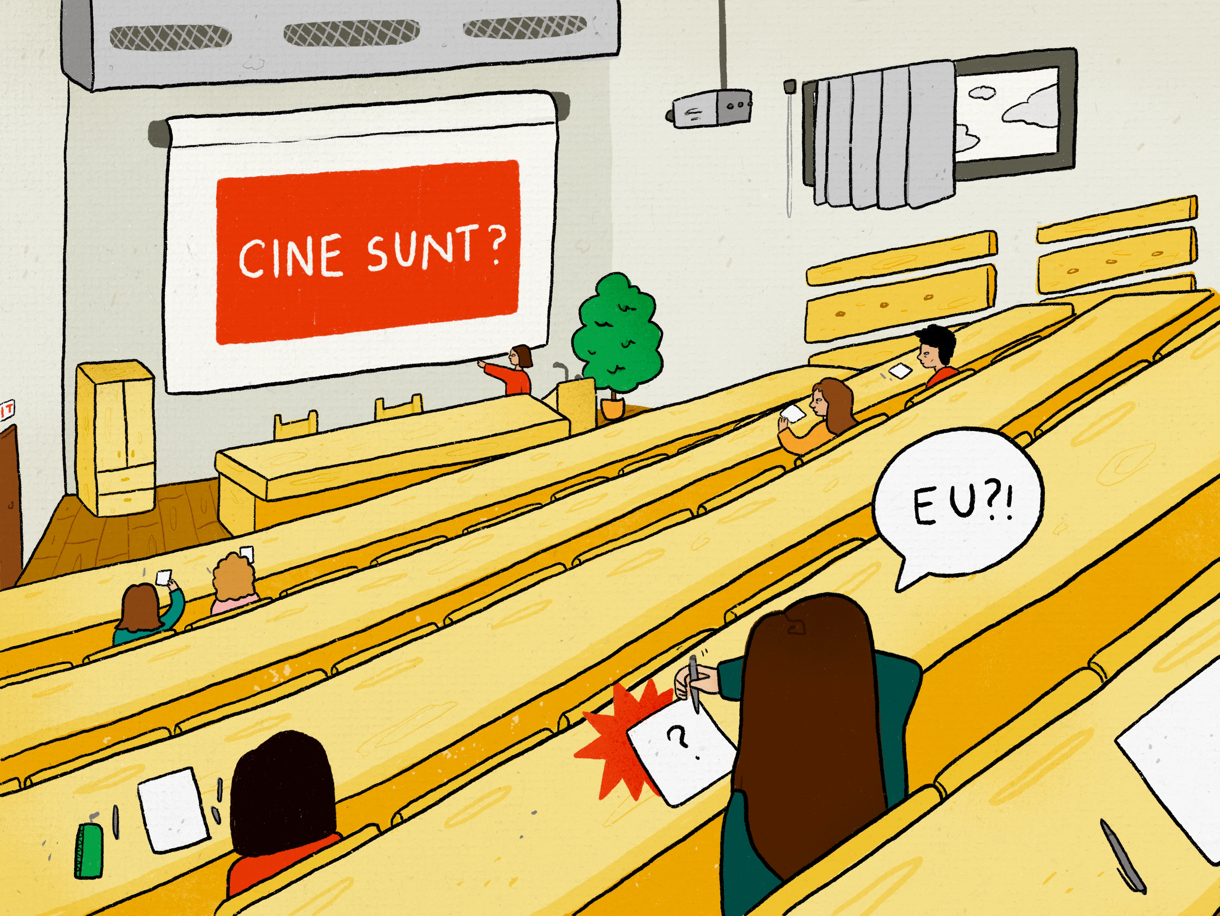 În aprilie 2022, m-am trezit și eu cu întrebarea asta, scrisă cu majuscule, pe tablă. Eram în anul I la Facultatea de Psihologie. M-am blocat. Am stat zece minute să învârt un pix în mână, până m-a bufnit plânsul. Cum adică cine sunt eu?