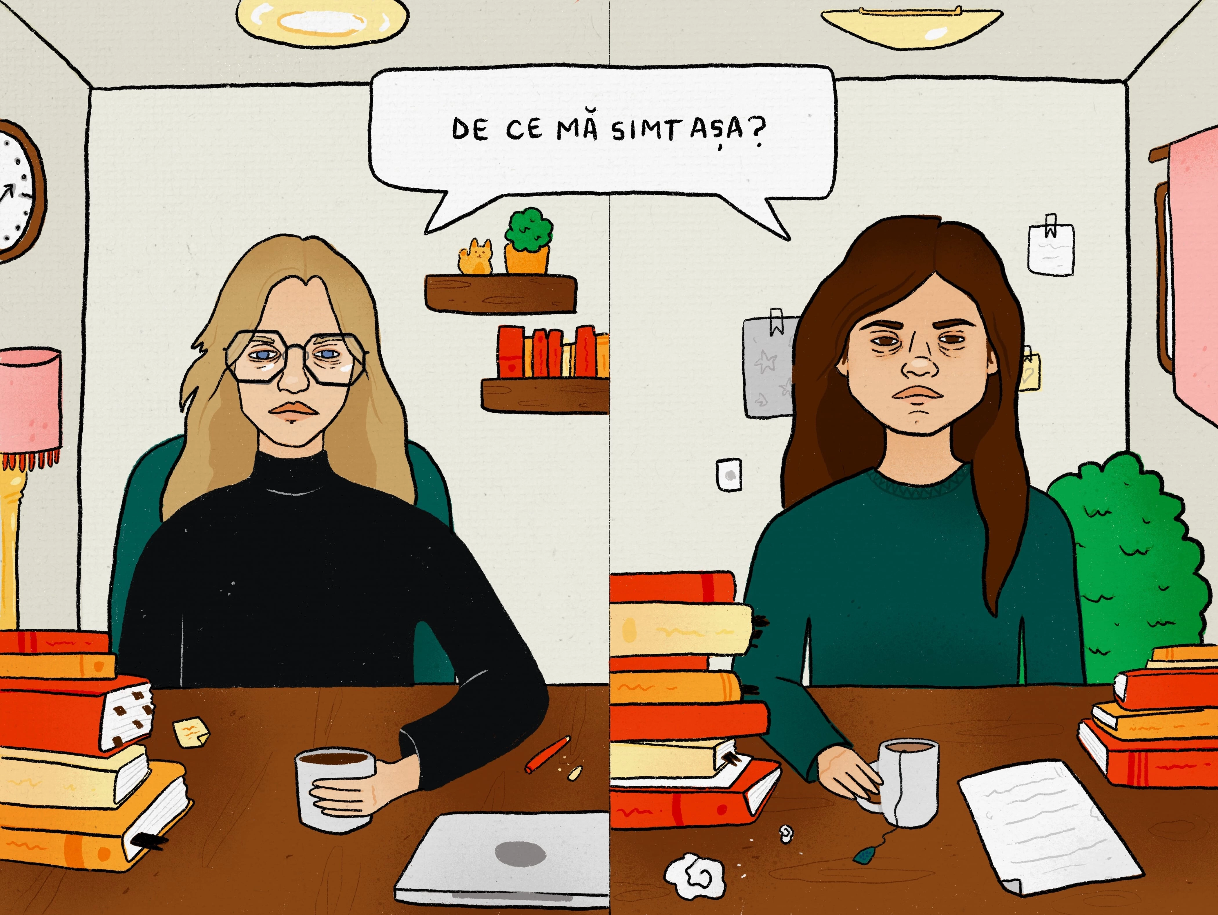 „Cel mai deconectată de identitatea mea m-am simțit în ultimul semestru de facultate. Munceam mult și prost, nu mai reușeam să mă organizez și mă obișnuiam să nu mai am grijă de mine, să dau somnul pe multă cafea și să merg înainte pe pilot automat, dintr-un deadline în altul.