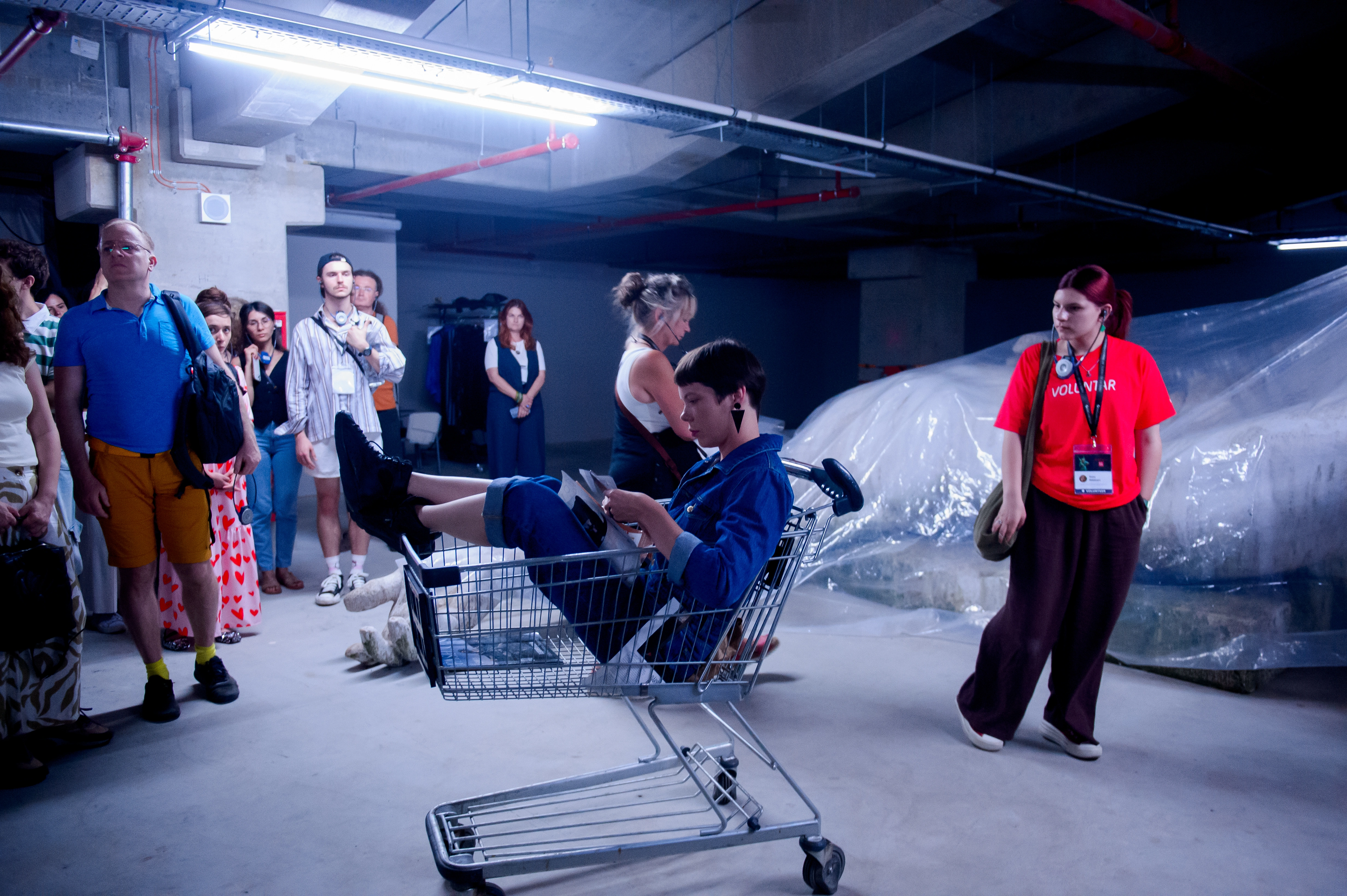 Deși Festivalul Internațional de Teatru pare să se fi infiltrat deja peste tot în Sibiu — în săli de teatru, de conferințe, în foste fabrici, pe străzi — iată că un spectacol al departamentului german al Teatrului Național „Radu Stanca” încearcă o nouă locație: mall-ul. Nu partea sa lucitoare, ci un depozit de lângă toalete, utilizat de actori ca sală de repetiții.