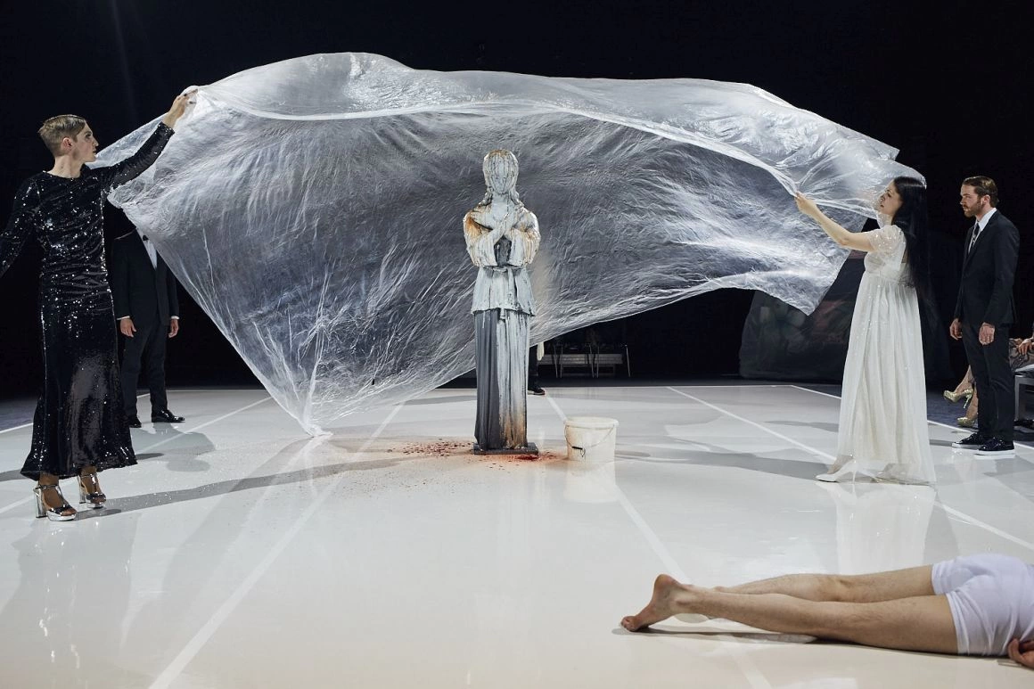Velica Panduru: Inițial nu eram implicată în spectacol, eram în Franța, prinsă într-un alt proiect și nu puteam să vin. Dar pentru că noi am lucrat împreună de când s-a apucat Eugen de regie, am ajuns într-un punct în care nici nu e nevoie să vorbim prea mult. Sunt lucruri evidente, care vin organic și pe care le simțim amândoi fără să le verbalizăm neapărat. E o relație specială. Așa că nu a fost complicat să lucrăm de la distanță. Evident, am lucrat pe mail, au fost schimburi de schițe, de fotografii, tot felul de probe, Eugen îmi trimitea și filmări de la repetiții. De aia a fost foarte emoționant să văd aici un spectacol pe care-l aveam foarte bine în cap, dar la care lucrasem de la distanță.