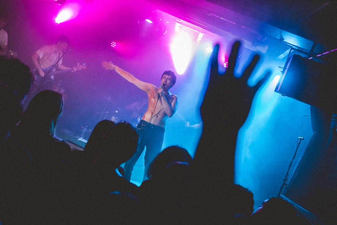„Uh, o dată mi-am sucit glezna pe scenă. Și Josh (chitaristul) și-a rupt piciorul pe scenă. Dar de obicei doar mă aleg cu vânătăi și tăieturi”, povestește solistul Charlie Steen, chiar înainte să ne spună ce cărți le-au influențat albumele (trilogia Wolf Hall de Hilary Mantel pentru Drunk Tank Pink, Lonesome Dove de Larry McMurtry și tragedii antice grecești la ultimul album food for worms). Sunt cunoscuți pentru modul foarte punk în care concentrează. Clasicele scheme, cu aruncat în mulțime, urcat pe decor sau dat din cap alături de fani. La Zagreb, Charlie a mers literal pe mulțime.