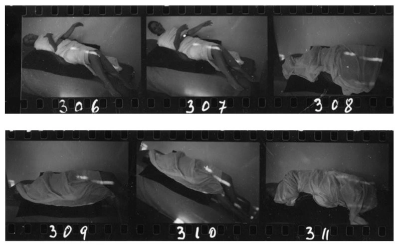 Propun aici o citire literală, dar am senzația că în sensul ăsta trebuie căutată o descifrare pentru ceea ce vedem în imagini. Argumentele pentru această interpretare sunt destul de prezente în seria Lamenta, care articulează foarte coerent la nivel vizual legătura dintre spațiul aplatizat al naturii moarte, giulgiul ca formă primară pentru obiectele în torsadă textilă / sau conuri și corpul mai întâi mort, apoi aproape viu al lui Lazăr (prezent în prima imagine din seria Lazăr în așteptare).