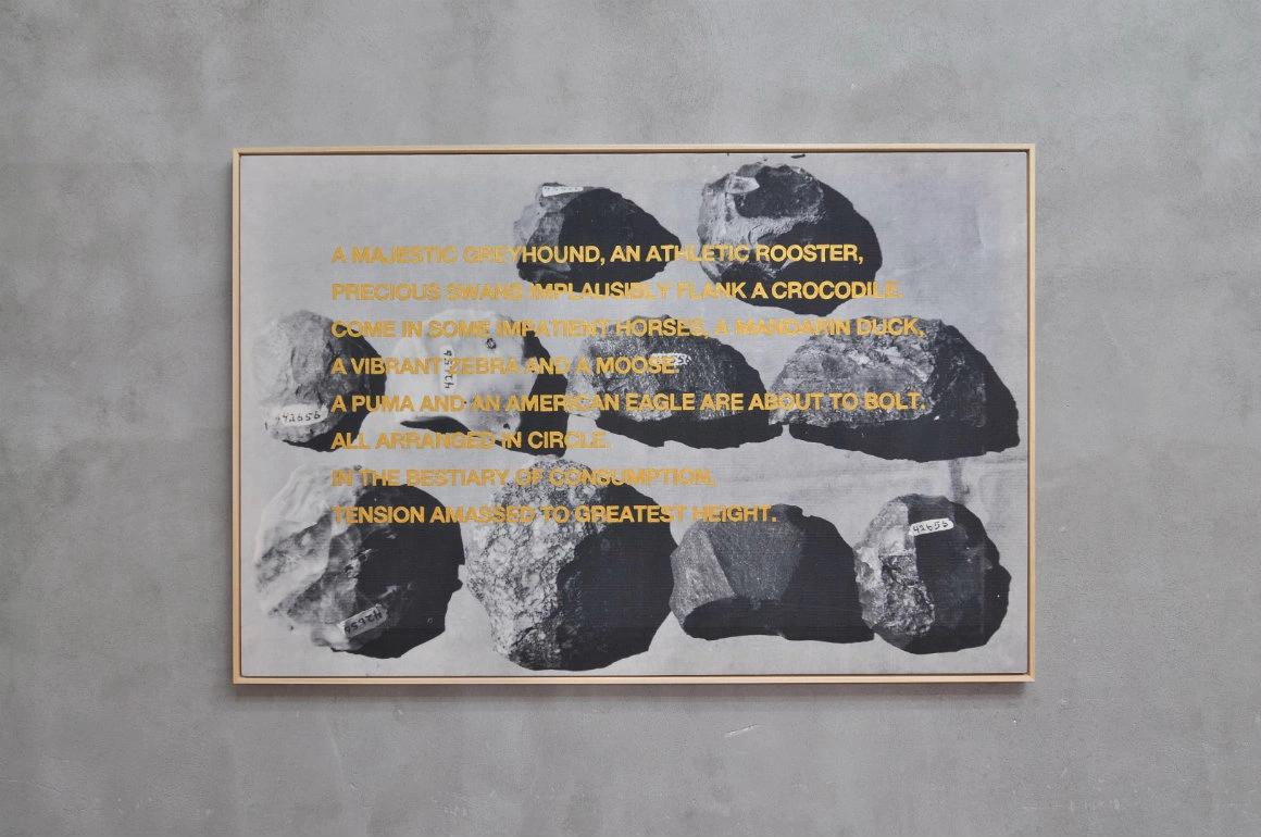În sensul ăsta, seriile de picturi ar trebui să fie niște naturi moarte, refolosind astfel un gen minor din pictura istorică într-un sens contemporan. Problema e, totuși, că în prima cameră avem o serie de peisaje, la nivel de fotografie, chiar dacă textul e un inventar de obiecte inerte.