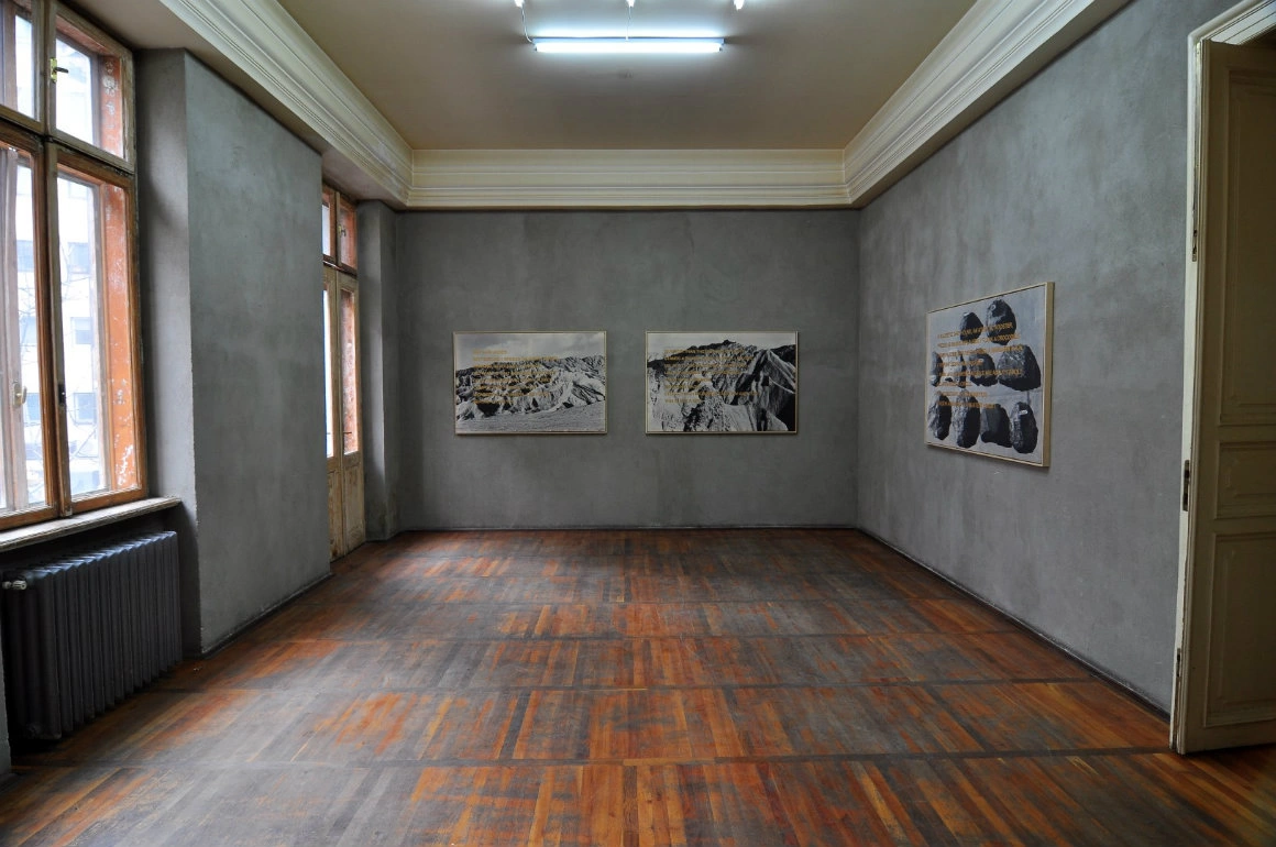 Ajuns aici, ar trebui să enunț și ambițiile manifeste ale expoziției, care merg în mai multe direcții. În primul rând, Apparatus 22 prezintă o expoziție de pictură, textul fiind pictat de mână pe printul fotografic. Dragoș îmi spune că e fascinat de pictură ca mediu, dar că a încercat, împreuna cu Erika Olea și Maria Farcaș, să găsească o cale către acest mediu care să îi reprezinte. Și să fie inovatoare, din punctul lor de vedere.