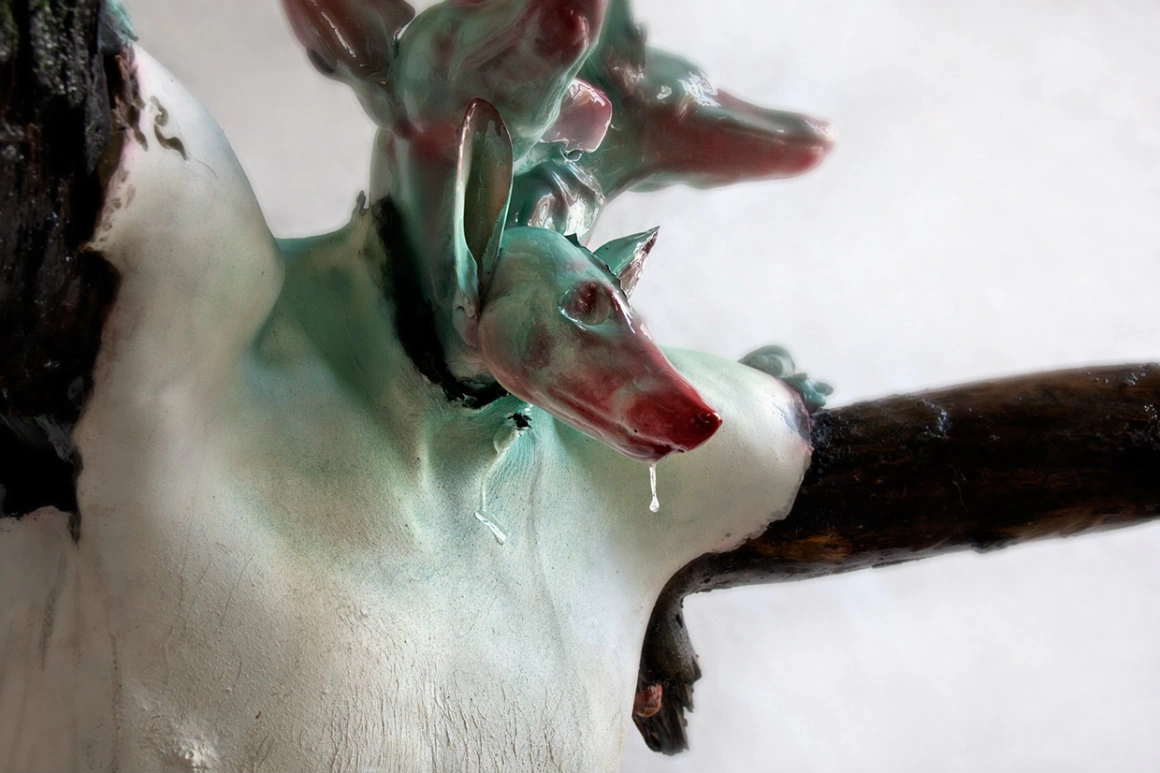 Când am dat nas în nas cu silueta aia fără față, cu pieptul deschis, din care creștea mușchi, de sub gluga căruia ieșea un cap de vulpe, aș fi putut să cred lejer că-i vis. Numai acolo se poate-ntâmpla să vezi o arătare așa de ciudată și să nu te miri prea tare, ba chiar să ți se pară la fel de probabil ca atunci când visezi un fost coleg de școală. Aveam în față o creatură pe care n-o mai văzusem nicăieri - un om din care-a rămas numai coaja, și din el a răsărit verdeața, la fel cum a răsărit și din Cernobîl. În locul feței, un cap de animal, cu ochii fixați spre telefonul în poziție de selfie. Cu toate astea, îmi părea cât se poate de firesc. La fel cum îmi păruse, în cărțile de povești din anii ‘80, jumătate-de-om-călare-pe-jumătate-de-iepure-șchiop. Poate fiindcă tocmai intrasem într-o galerie de artă, unde șansele să pici într-un rabbit hole sunt infinit mai mari decât dac-ai intra, să zicem, într-un notariat. Și poate fiindcă The Catcher 2, așa cum am aflat mai târziu că se cheamă lucrarea asta, dă forma unei fantezii de 2017, de om crescut cu picioarele-n iarbă care-a ajuns să-și plimbe avatarul prin iarbă digitală.