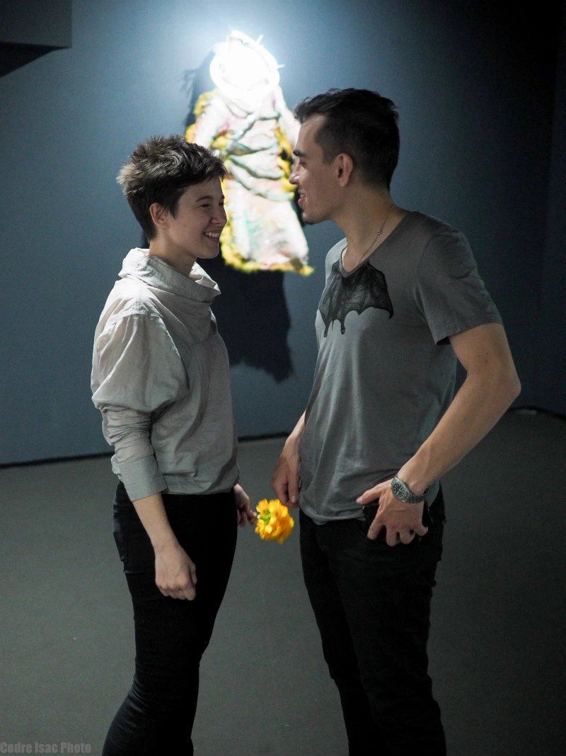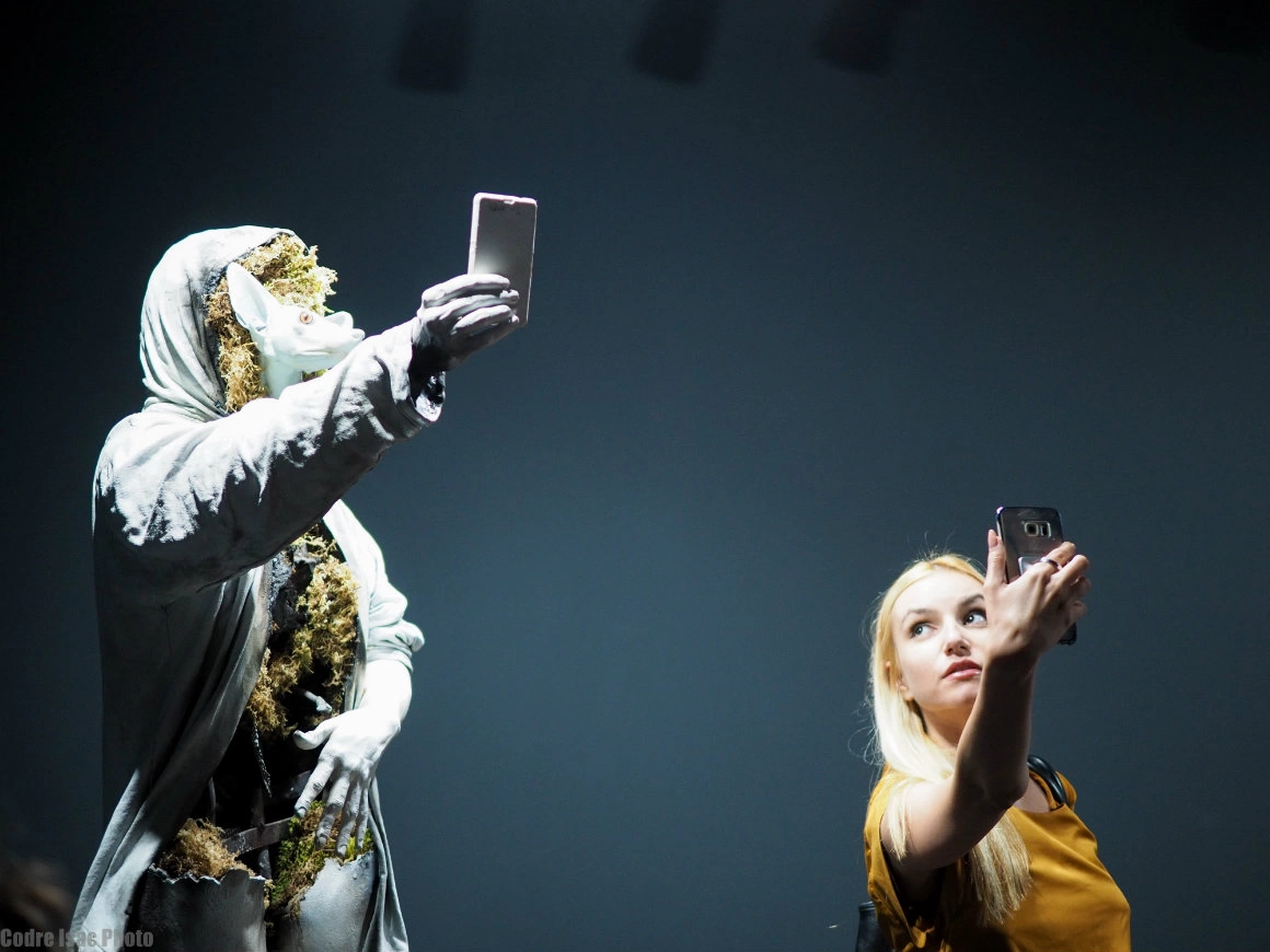 Lucrările lor, la baza cărora Peter spune că stau „80% intuiție și 20% reacția la lumea din jur”, tocmai cu asta se ocupă. Să creeze imagini noi pentru schimbările care au loc înăuntrul și în afara noastră, a oamenilor care trăim de mână cu tehnologia. Insomnia, cel mai nou proiect al lor, pornește pe firul unei epidemii de „insomnie digitală”, iar The Borders of Memory (2016) urmărește într-o serie de tablouri și obiecte ce se întâmplă cu memoria noastră, în care ficțiunea-și poate face loc mai ușor ca niciodată. În Out of Range, proiect din care face parte și androginul cu cap de vulpe care mă întâmpinase la intrarea în galerie, pădurea e privită ca refugiu într-o lume din ce în ce mai artificială, unde conexiunea cu sinele are parte de mai puține bruiaje și unde animalul din noi se simte safe să scoată capul. „Pădurea noastră e, de fapt, un fel de metaforă”, explică Peter. „Nu poți vedea viitorul de copaci. Mergem cu toții pe un drum foarte îngust, pe care o luăm ba la stânga, ba la dreapta, fără să știm unde ajungem”. „Cumva, e o paralelă cu perioada medievală, când oamenii mergeau în pădure să se regăsească. Când eroul se luptă cu sine și încearcă să înțeleagă cine este. Uneori se panichează, alteori are impresia că a văzut ceva în depărtare. Așa ni se întâmplă tuturor, la nivel individual, dar și ca umanitate”, spune Oxana.