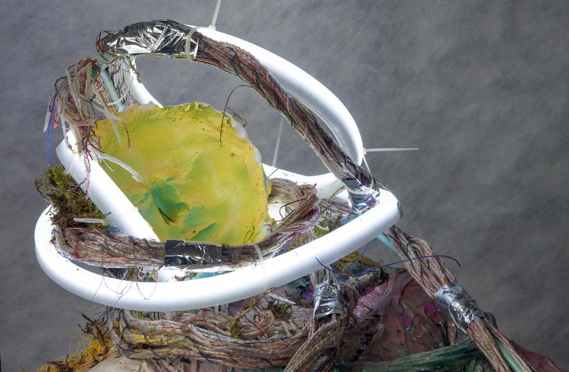 Oxana și Peter ajunseseră la București cu o zi înainte, dar deja se simțeau bine în oraș. Li se părea cosy. „La Moscova ai mereu impresia c-o să se întâmple ceva. Nimeni nu știe ce. E un oraș apăsător, cu străzi foarte mari, și oamenii merg mai mereu pe lângă ziduri”, povestește Oxana Simatova. Are 38 de ani și a studiat artele la Moscova, la fel ca Peter Goloshchapov, alături de care lucrează din 2011, sub numele de Crocodile Power. Pictează, fac sculpturi și instalații, toate într-un experiment continuu în jurul ideilor, al tehnicilor și-al materialelor. Umanoizi din fibră de sticlă, din care ies cabluri sau plante culese din pădure, vopseaua e amestecată cu rășină, scoarța de copac cu metalul. Păduri pictate în culori psihedelice, cu copaci ca niște relee. Imaginea e cât se poate de convingătoare, gata să te soarbă așa cum o face virtualul la fiecare contact cu touch-screen-ul. Doar din când în când apare în tablou câte-o ștersătură, o deformare, un glitch care să-ți aducă aminte că ceea ce vezi e doar o imagine a realității. Ca atunci când ești super-prins într-un film și, dintr-o dată, pixelii încep să tremure sau se taie conexiunea de net și ultimul cadru îngheață pe ecran.