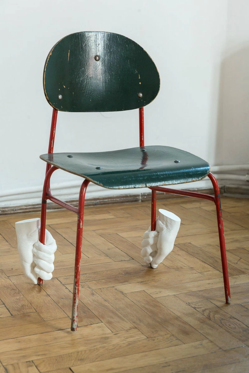 Nu te-ai fi gândit că e o expoziție despre o dragoste neîmpărtășită. Și în niciun caz o iubire naivă și firească a unui copil. Dar acum știi. Și știi și ce e cu scaunul miniatural, de școală generală. Știi și ce e cu mâinile puse la spate, care apucă nervos tijele de la spătar. E o copilărie trăită la școală, cu străini, cu resentimente față de părinții care te-au părăsit și te-au lăsat singur.