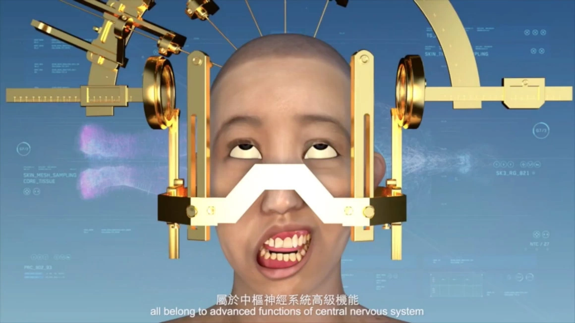 De aici, de exemplu, vine și lucrarea lui Lu Yang, care e de fapt o ilustrare a efortului grotesc al neurologiei moderne de a localiza conștiința în creier, cu ajutorul unor ace.