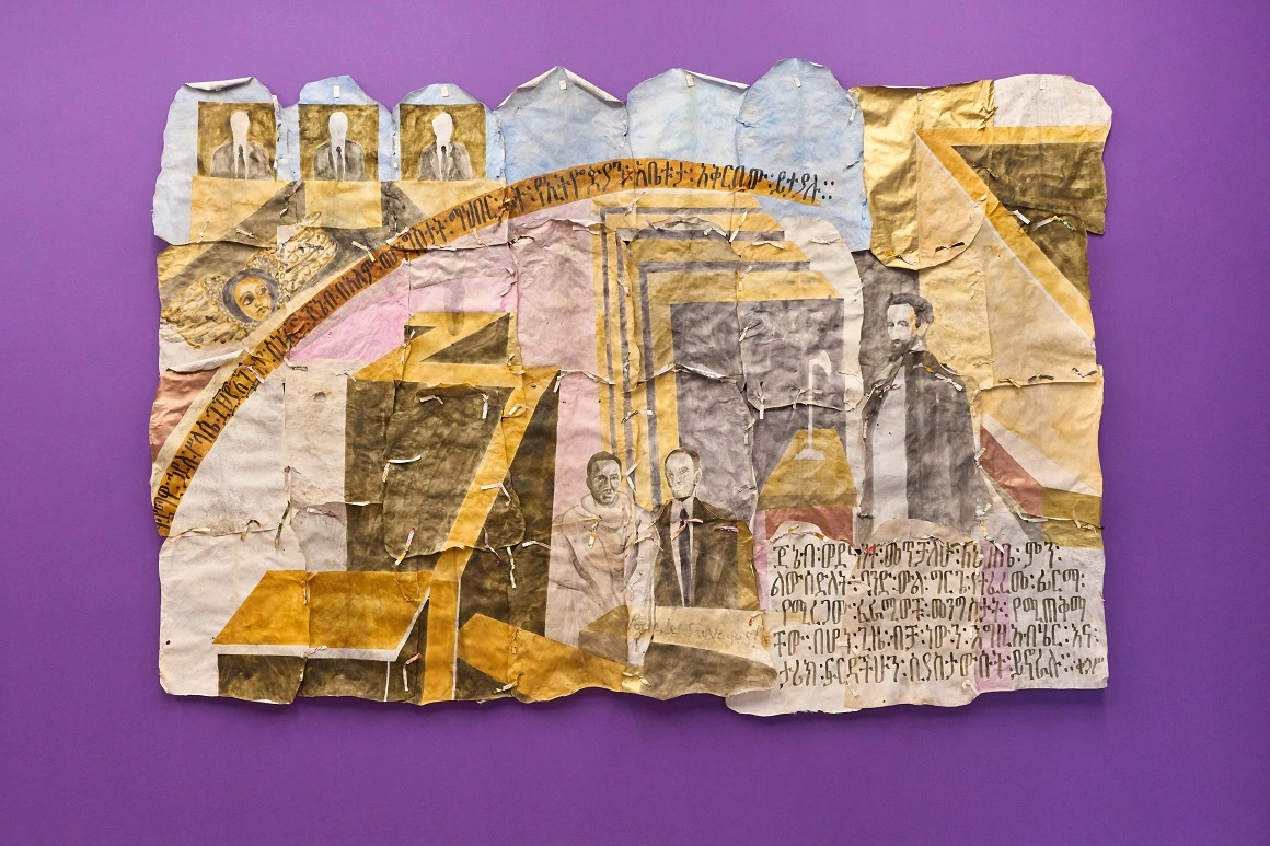 Chiar la începutul expoziției curatoriate de Cosmin Costinaș, împreună cu artiștii Mona Vătămanu și Florin Tudor, mai multe lucrări de artă încep să povestească câte un astfel fragment neștiut ori voit marginalizat din istoria țării noastre, la intersecție cu alte spații culturale și geografice. O pictură de mari dimensiuni realizată de Robel Temesgen, artist contemporan de origine etiopiană, pe bucăți de pergament din piele de capră, face referire la un episod puțin cunoscut, dar de o actualitate prevestitoare.