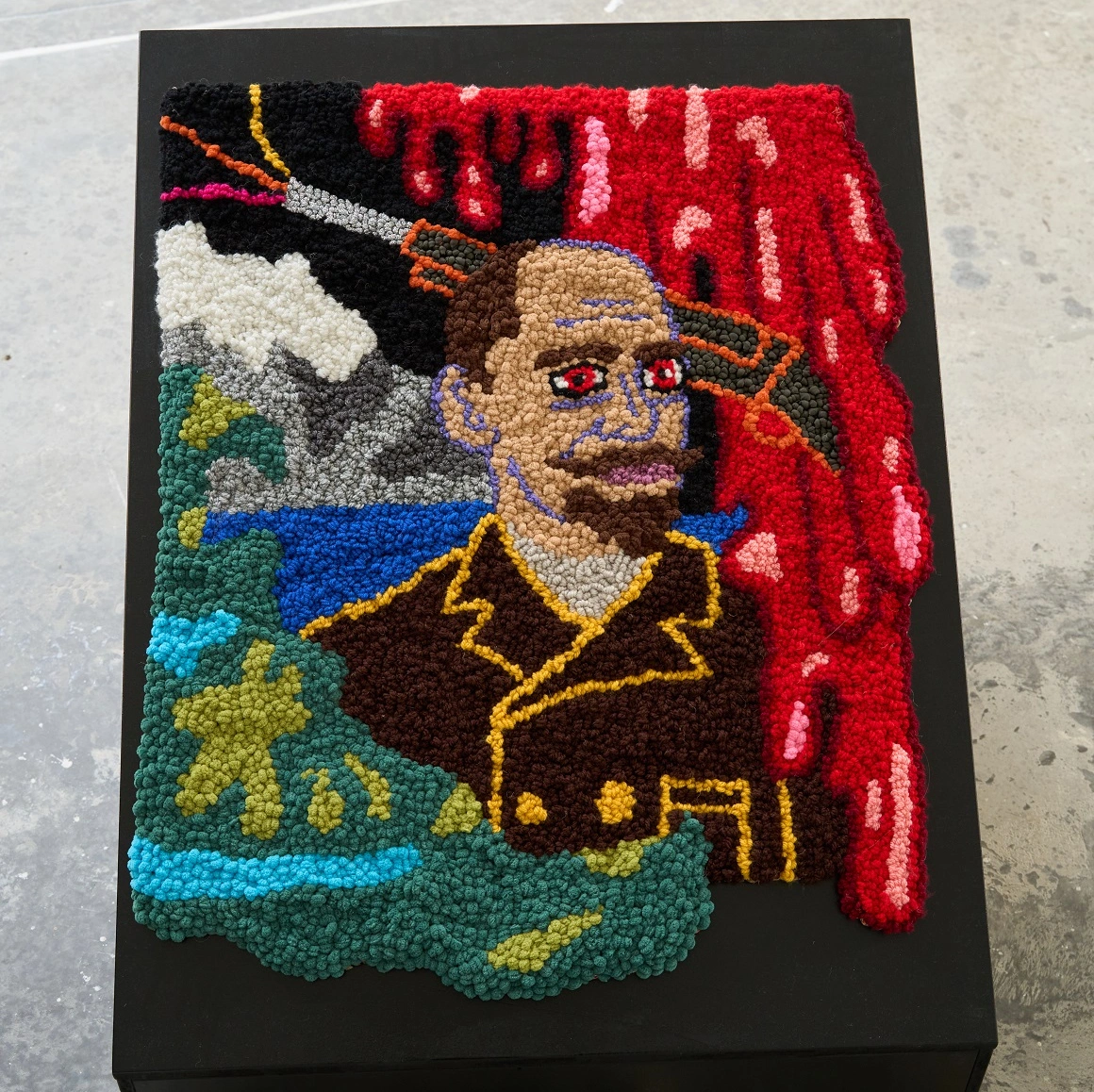 Megan Dominescu, cunoscută pentru instalațiile ei textile pline de umor negru, a surprins în șase tapiserii portretele unor exploratori care au trăit pe teritoriul României de azi, printre care și Iuliu Popper. În interpretarea ei, protagonistul e reprezentat ca pe un timbru comemorativ, însă de data aceasta cu ochi roșii, vampirici, și cu un splash de sânge vâscos care se scurge din partea superioară a imaginii. Pe fundal se întrezăresc părți din peisajele impresionante a zonei ocupate de Popper și de armata lui, și o armă de foc care trage de zor. Oare nu ar fi fost asta o ilustrație mai potrivită pentru timbre care să-i recupereze memoria?