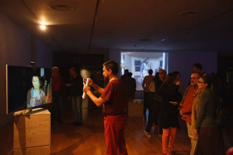 Ieșind din nou în spațiul central, o plasmă tv cu o imagine de cameră de supraveghere, cu software de recunoaștere facială instalat, care însă reda imaginea vizitatorilor din expoziție ca pe un fel de halucinație psihedelică. Culori curg din silueta umană, fața e deformată, iar în audio se aude un montaj cu Donald Trump.